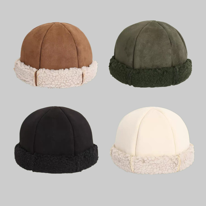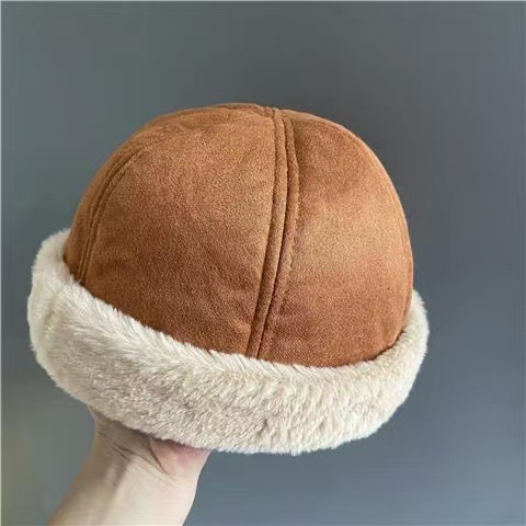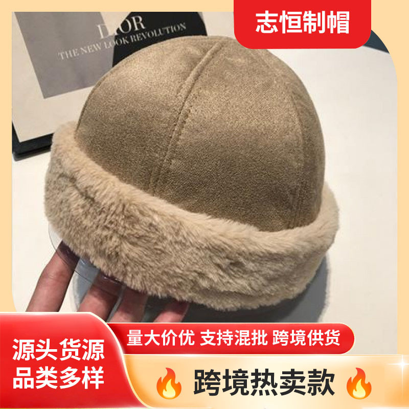 スエードラムウールプルオーバーハットモンゴル帽防風セーラーハットメロン皮帽子秋冬暖かい漁師帽女性用