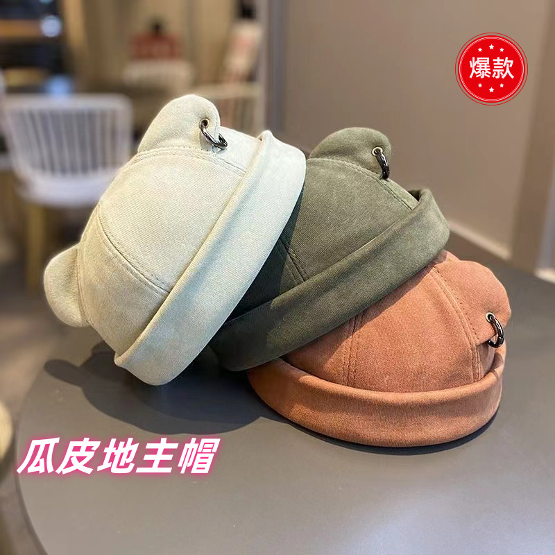 跨境帽子地主帽女国潮保暖毛毛瓜皮帽秋冬外出游百搭雅痞嘻哈帽