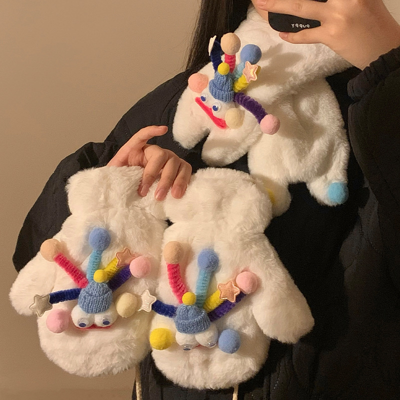 可愛くて面白いピエロぬいぐるみプラスベルベット厚く暖かい防寒手袋冬の学生ソフトかわいいサイクリングホルターネック手袋
