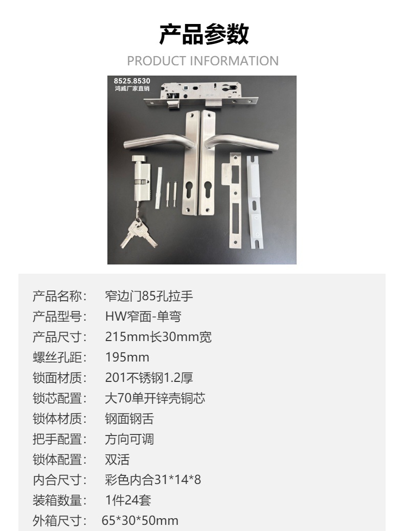 工程门不锈钢85孔拉手2585锁体出口8530室内门把手全钢8525锁体