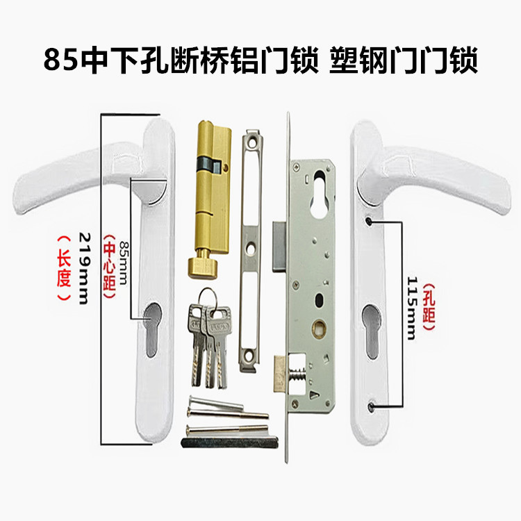 85中下穴執手断橋アルミドアロックプラスチックドアハンドルロックバルコニードアロック85中心距離ドアロック