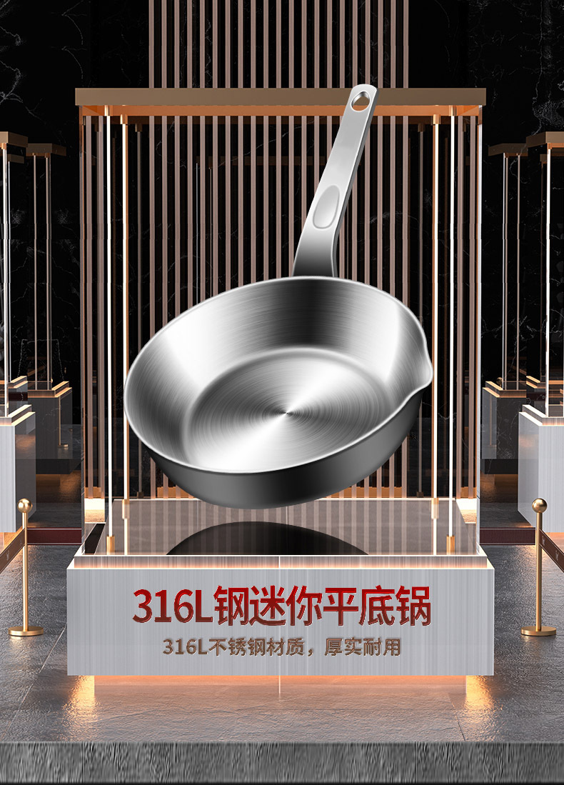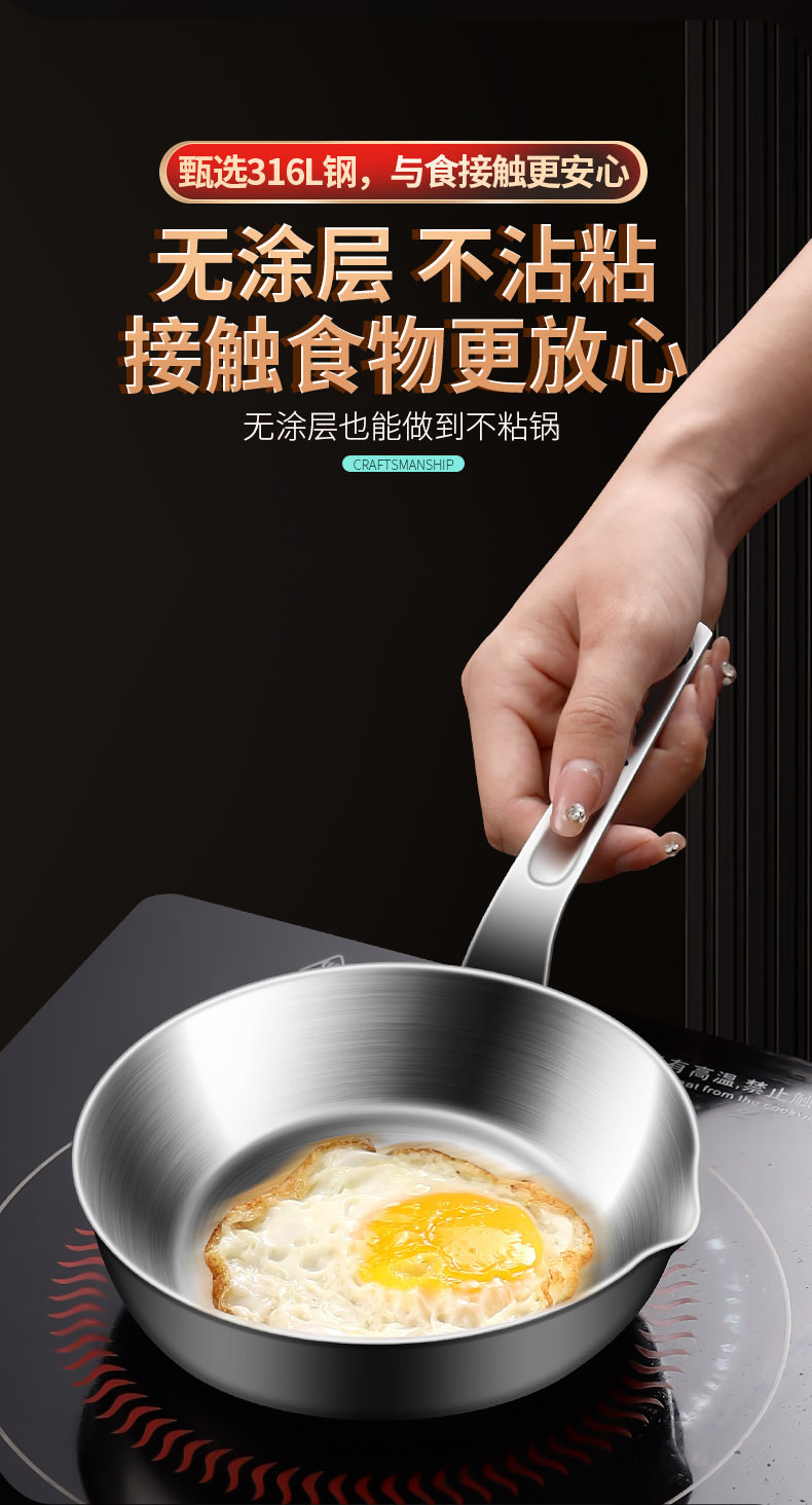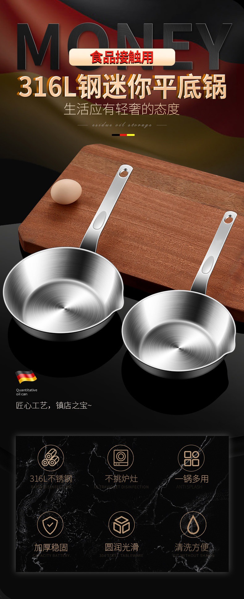 316L钢平底锅无涂层家用迷你小煎锅煎蛋煎饼锅神器煎牛排淋油小锅
