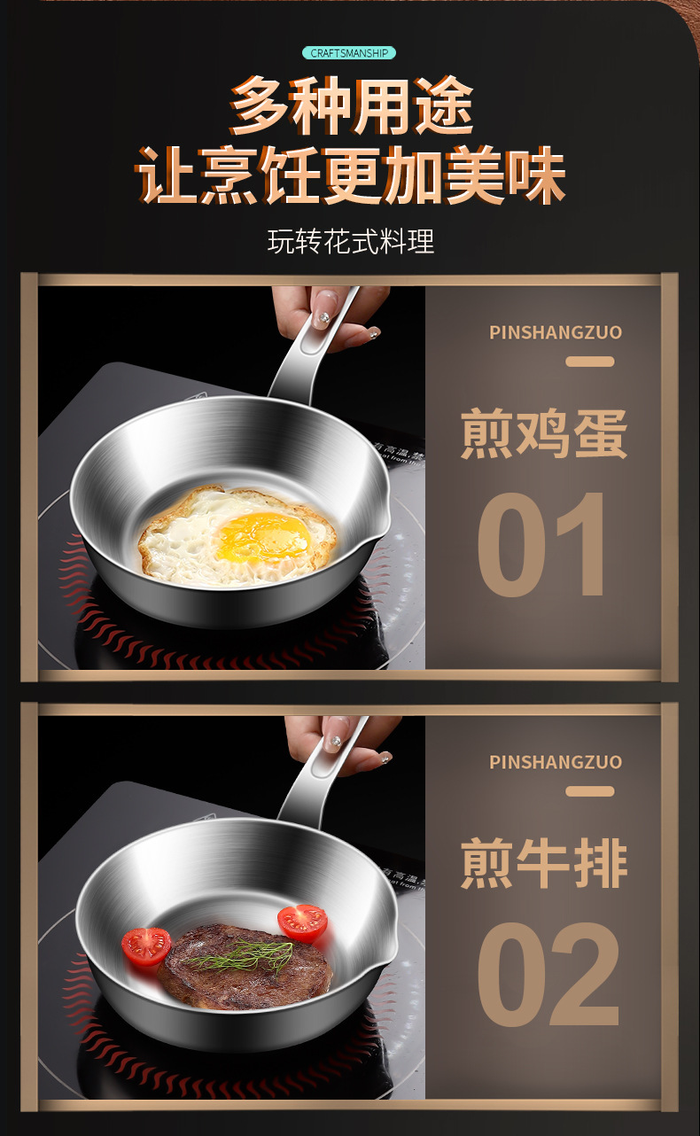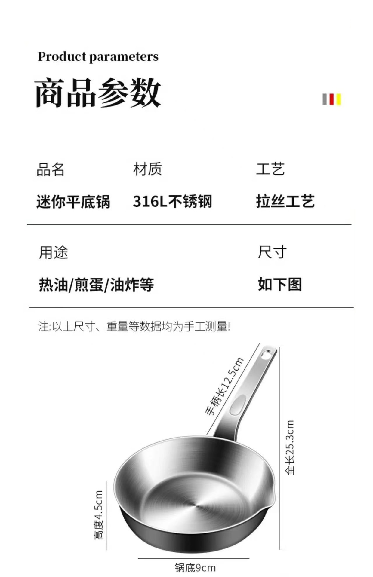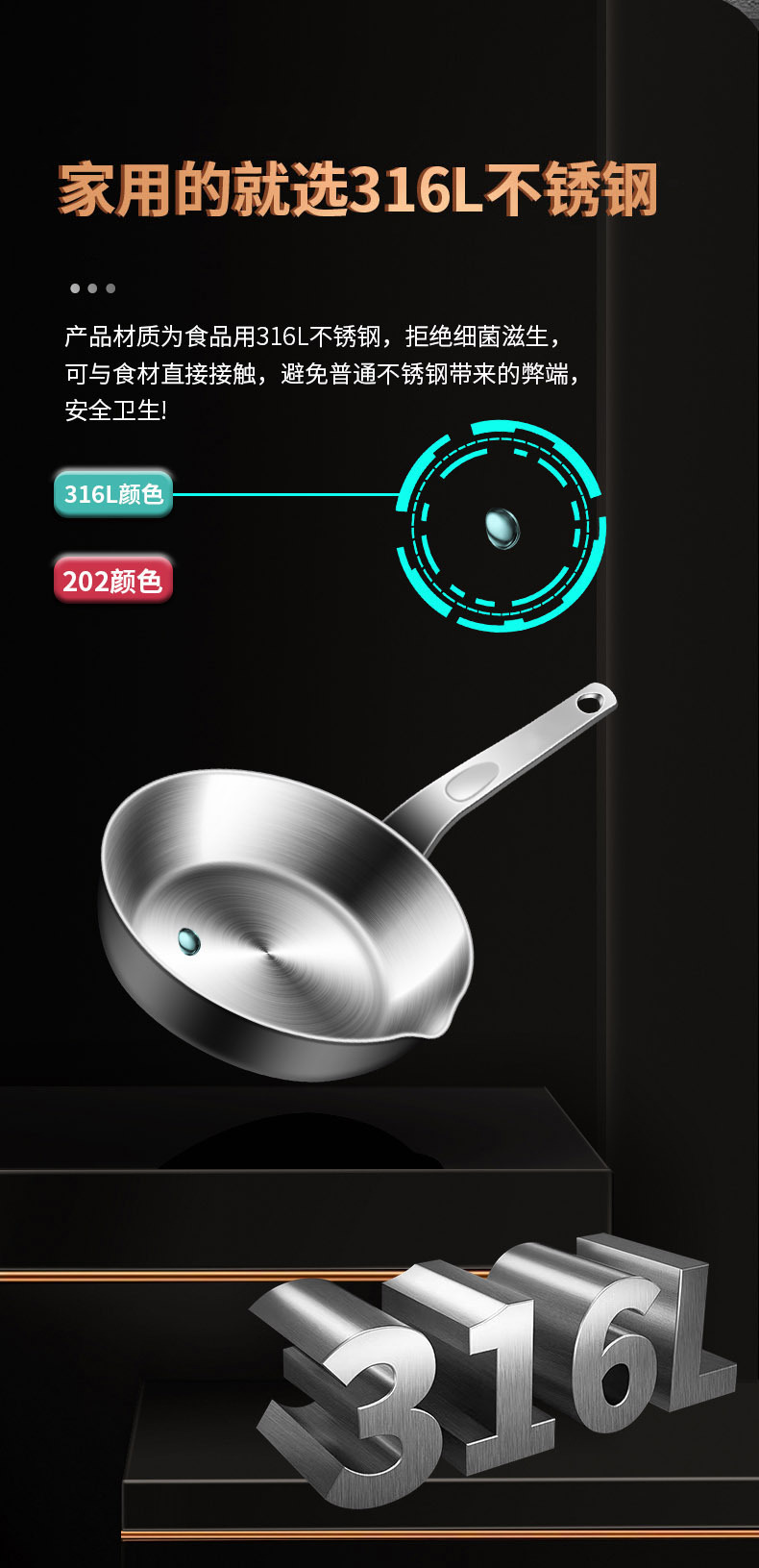 316L钢平底锅无涂层家用迷你小煎锅煎蛋煎饼锅神器煎牛排淋油小锅