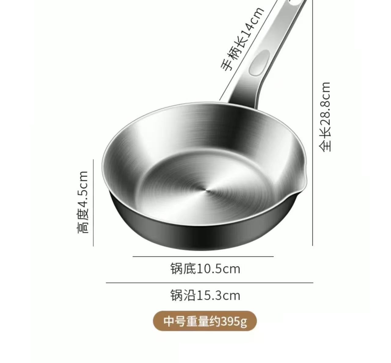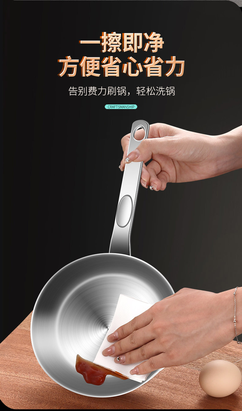 コーティングされていないオムレツパン ステーキフライパン パンケーキパン 油まき小鍋 316L 三層鋼 ガスストーブ ユニバーサル