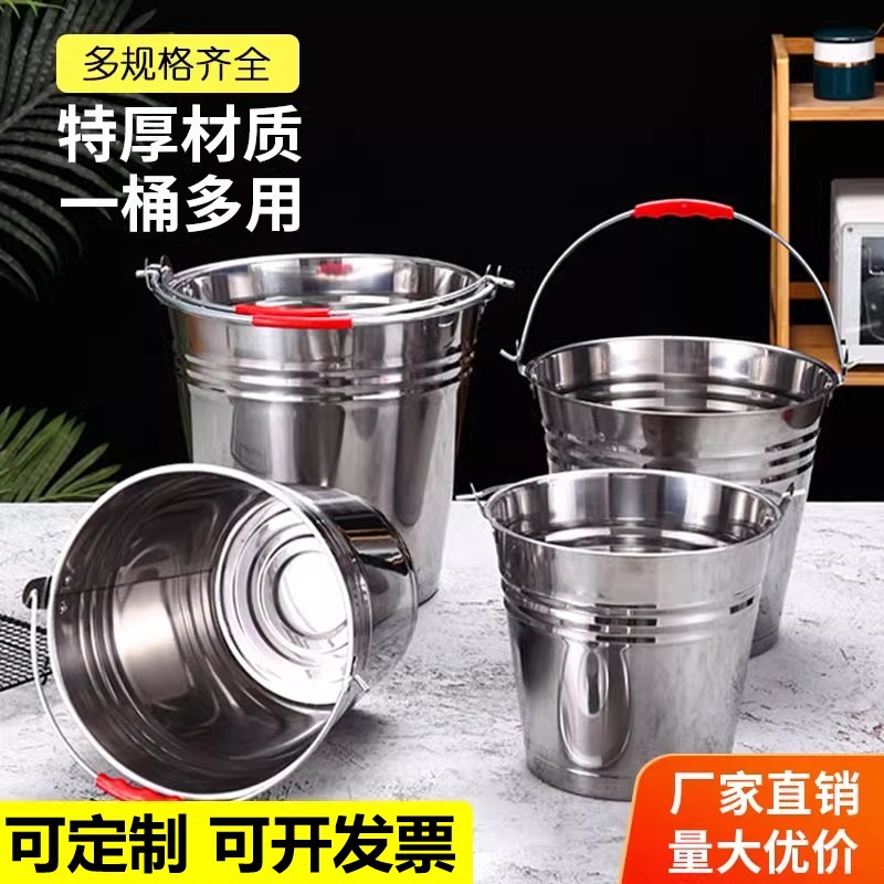 ステンレスのバケツの手提げ式の氷のバケツの幼稚園のゴミ箱は蓋のバケツの鉄のバケツの家庭の台所の食堂を持って厚くなります。