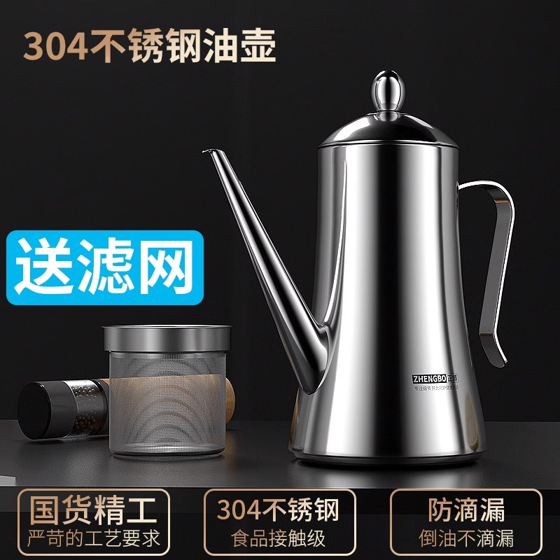 304ステンレス製オイルポット、家庭用、フィルター付き、油貯蔵タンク、キッチンオイルボトル、油渣ろ過、食用油