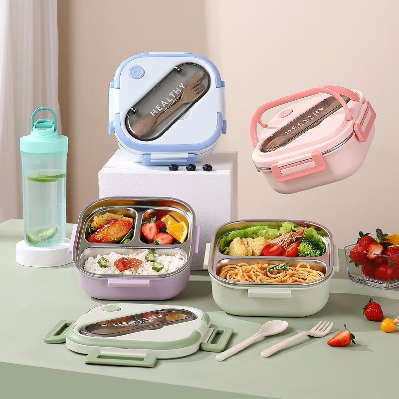 クロスボーダーinsプラスチック弁当箱学生ランチボックス電子レンジ加熱弁当箱サラリーマン分格角弁当箱