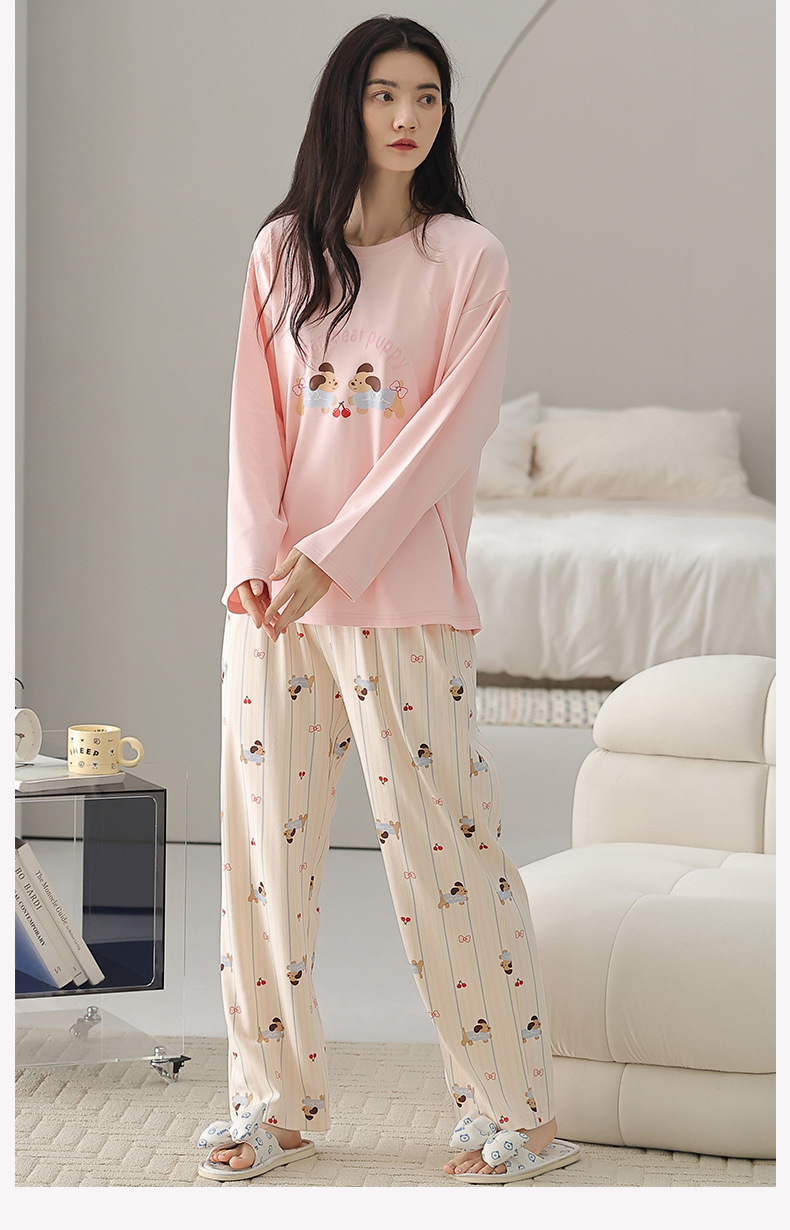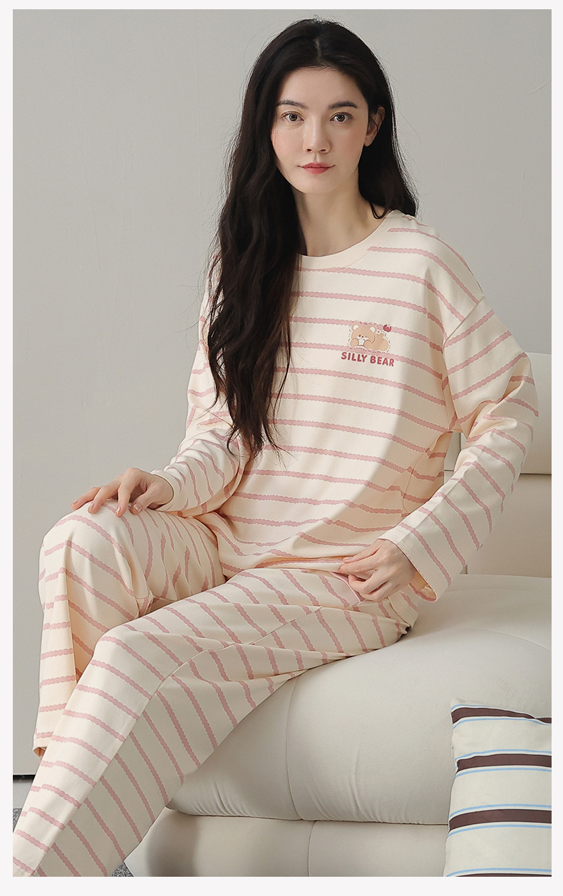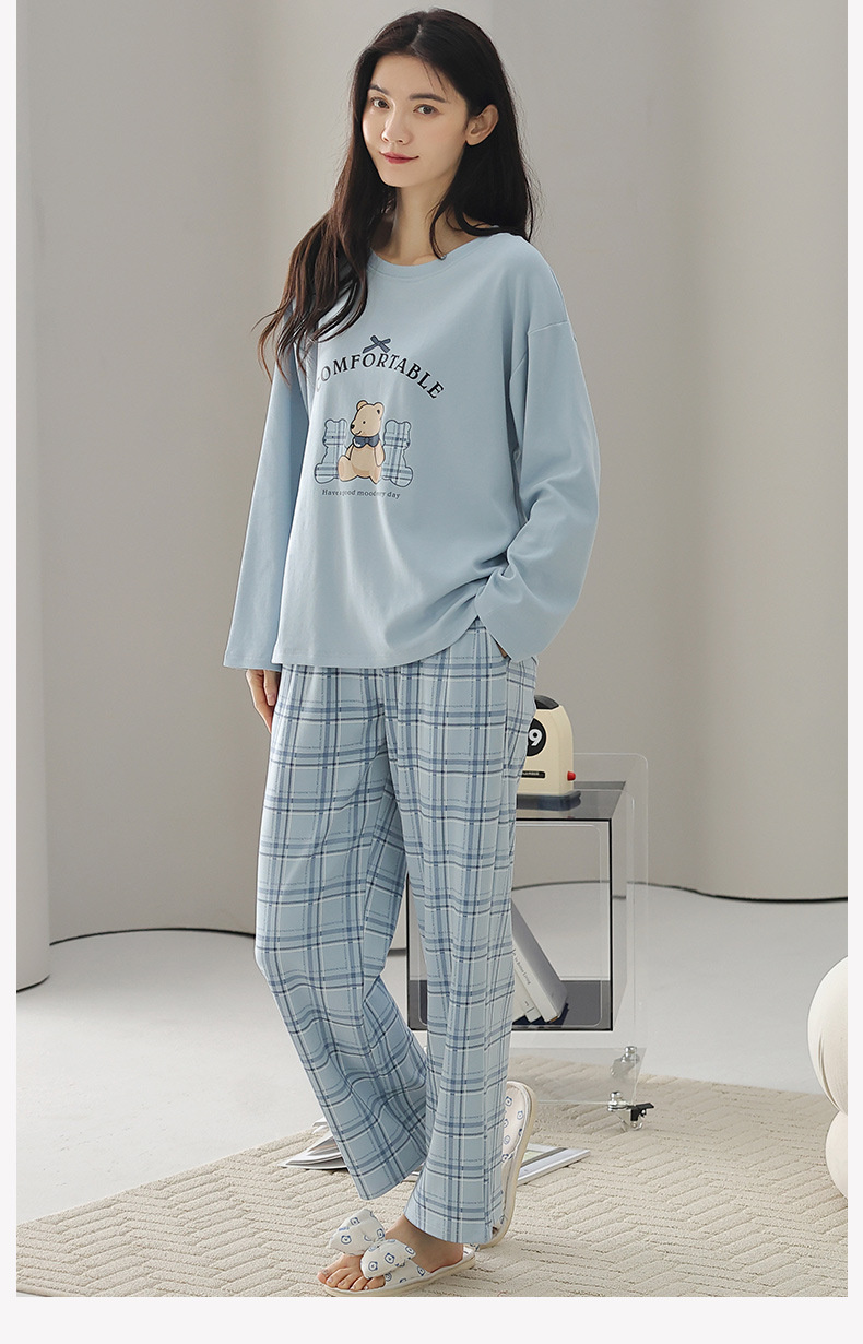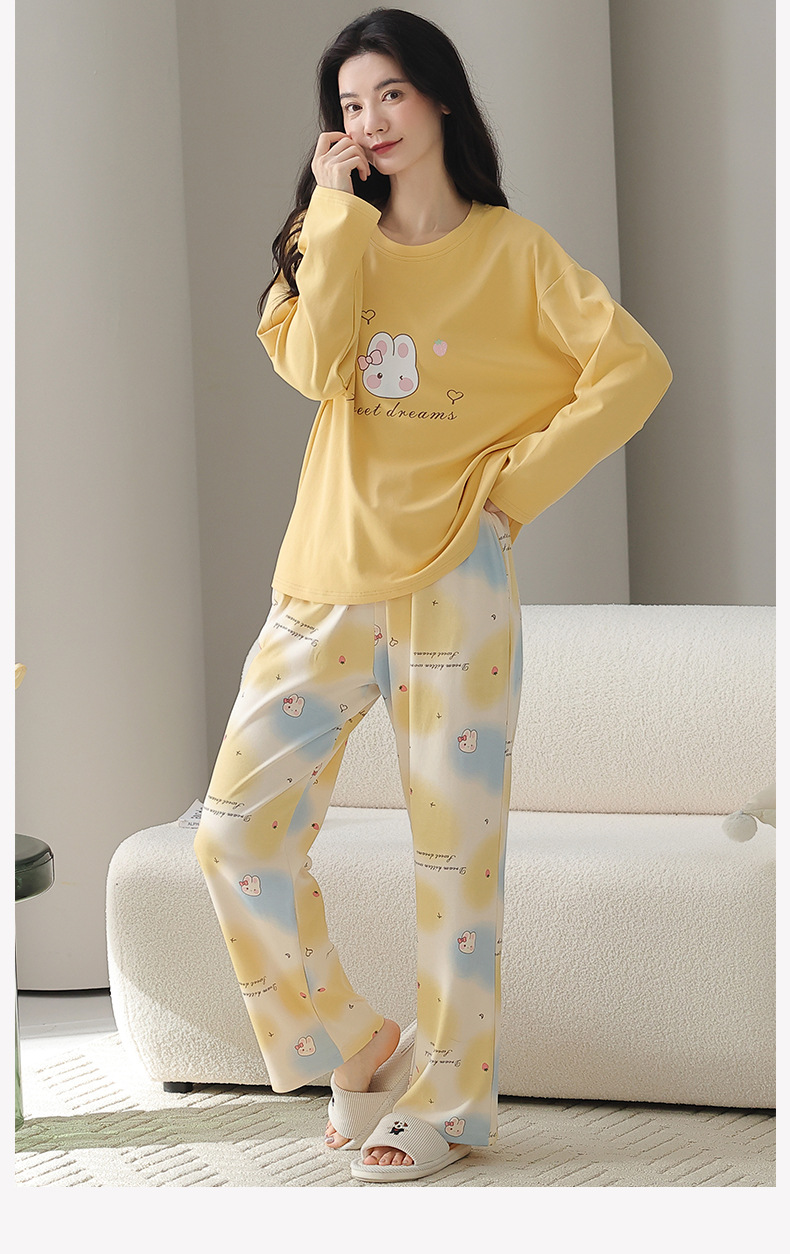 A类长袖纯棉睡衣女春秋长裤甜美卡通宽松韩版简约休闲女士家居服