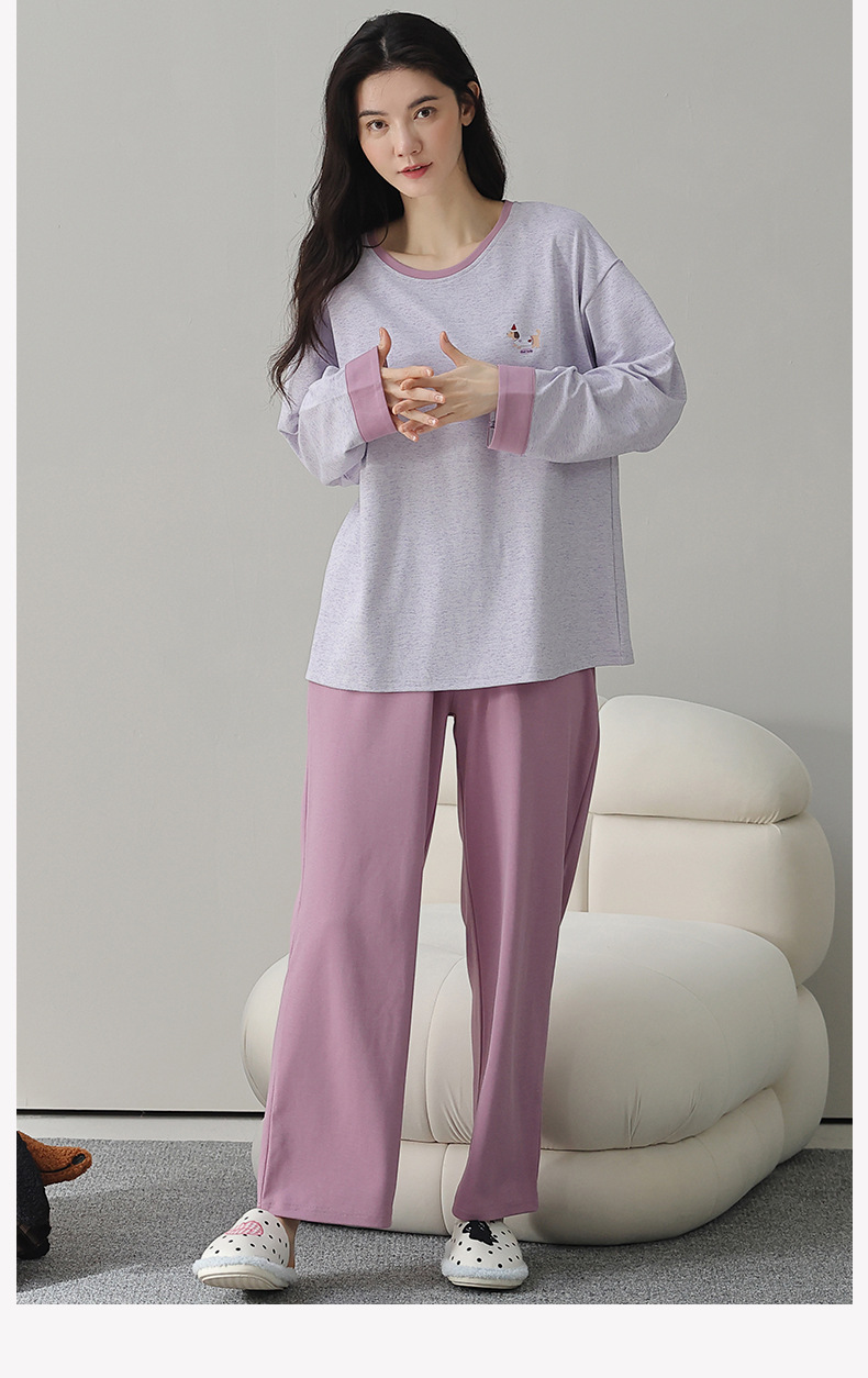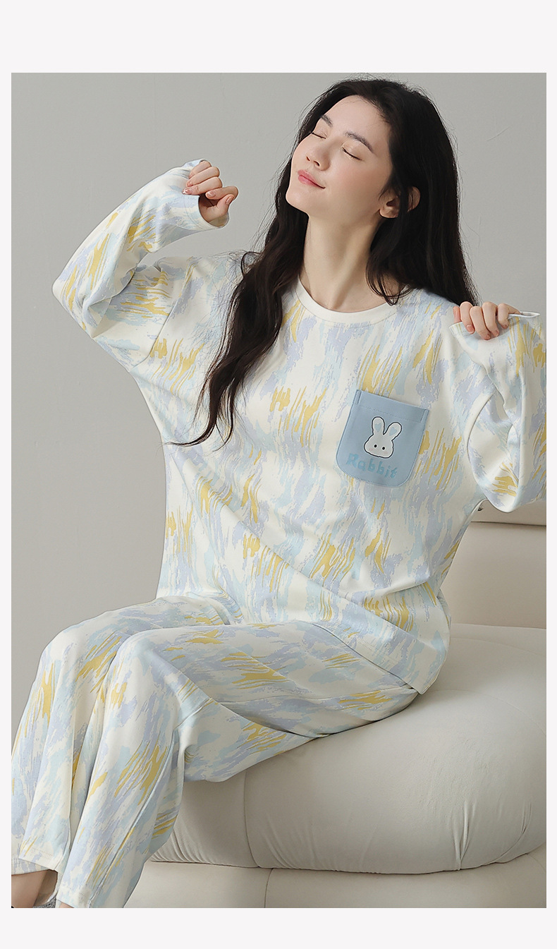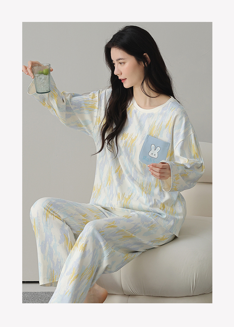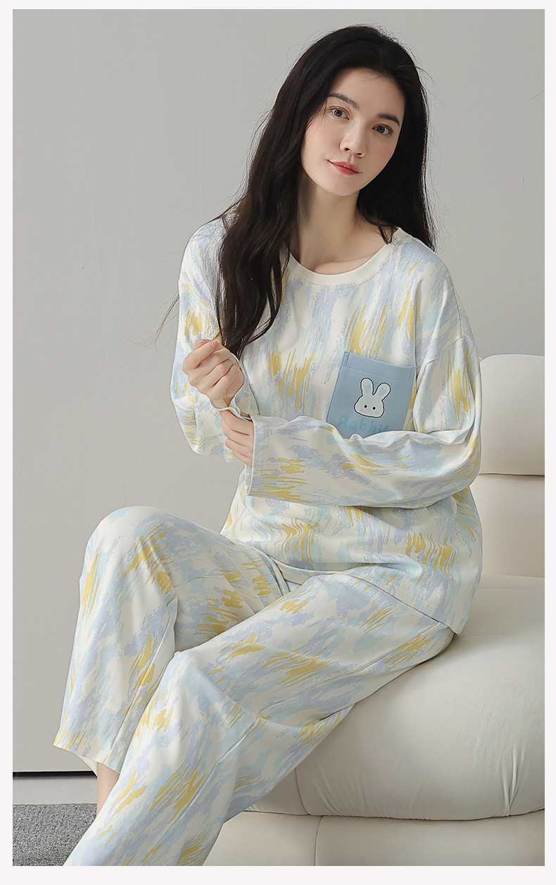 A类长袖纯棉睡衣女春秋长裤甜美卡通宽松韩版简约休闲女士家居服