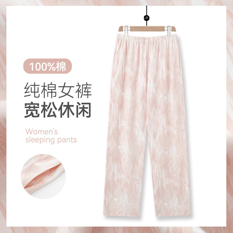 クラスAのパジャマの女性のズボン春秋夏の純綿の薄いタイプのゆったりした大きいサイズの純綿は夏のカジュアルな家のズボンを外に着ることができます。