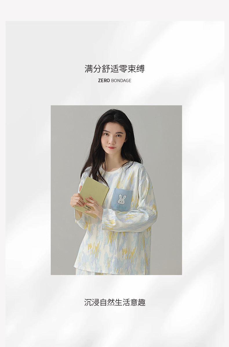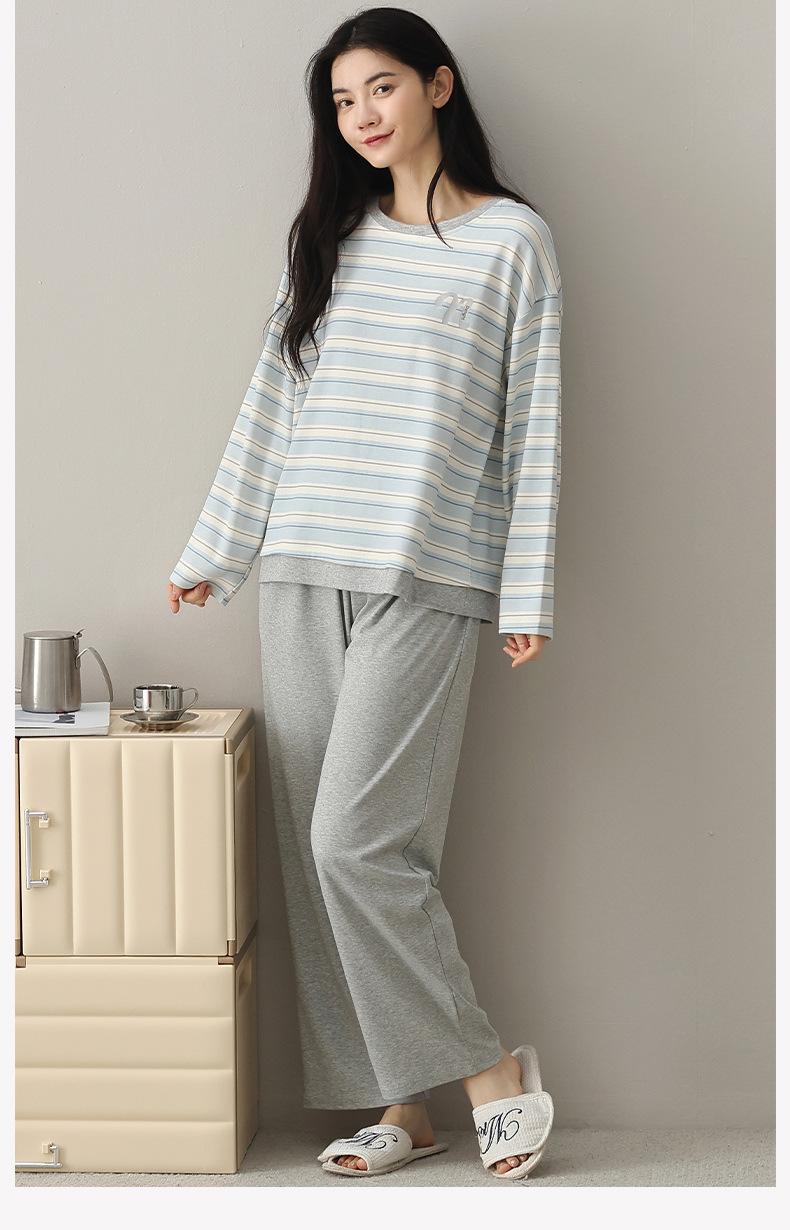 春秋季长袖长裤纯棉睡衣女韩版新款高档全棉家居服两件套装可外穿