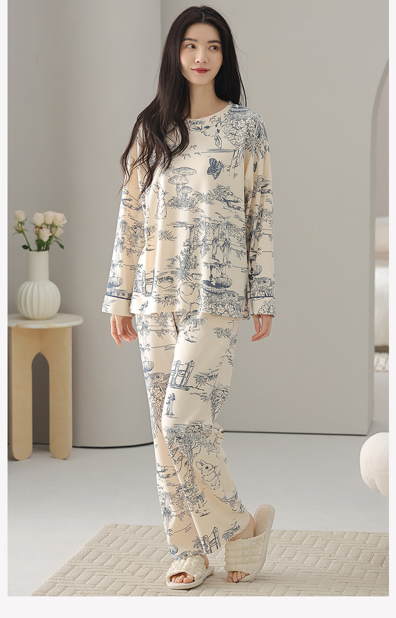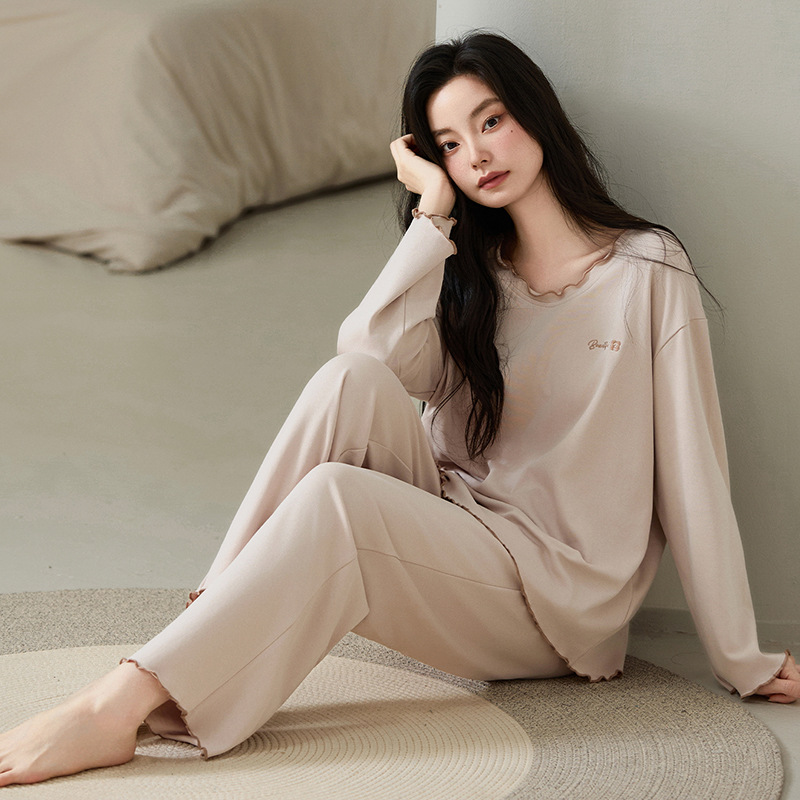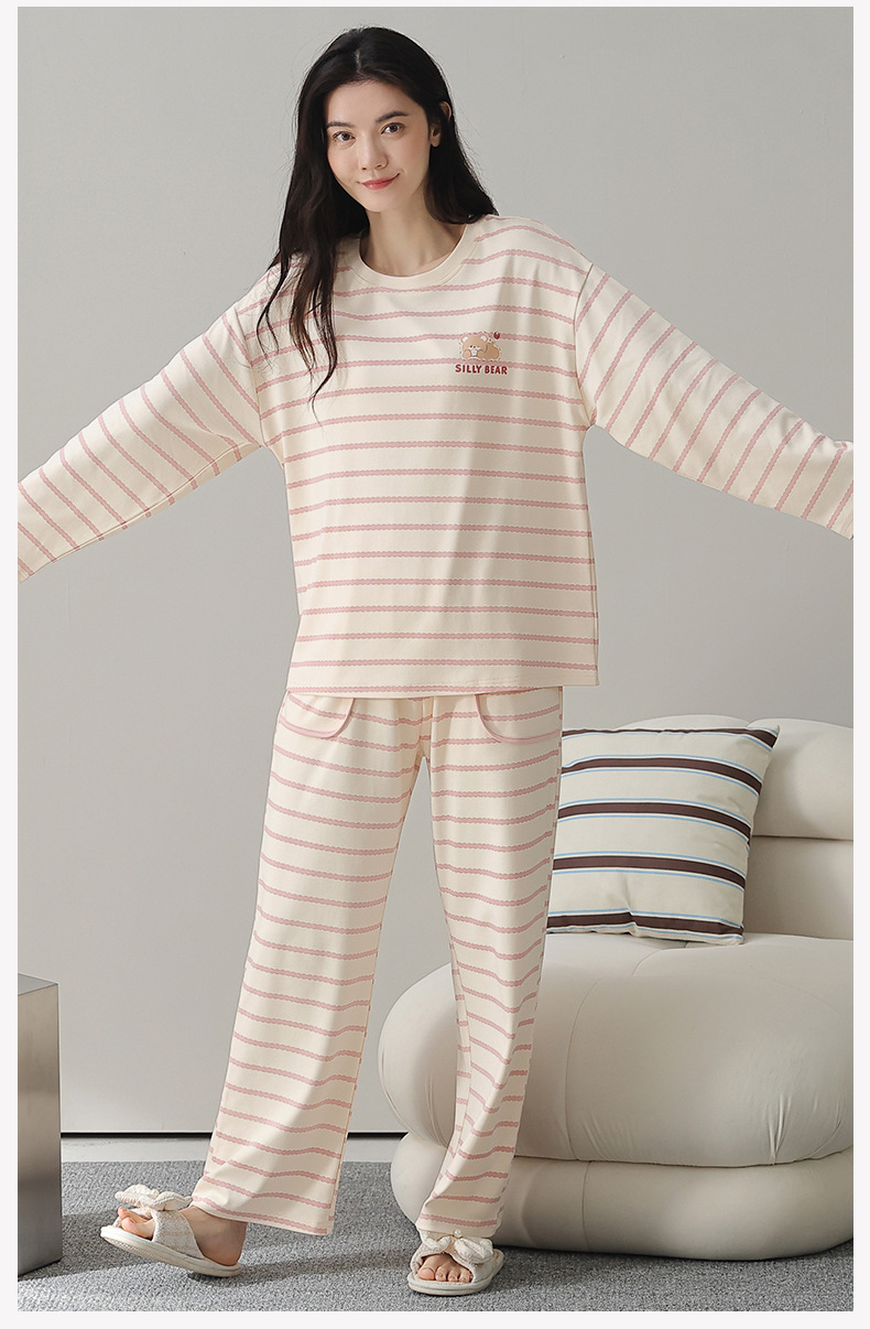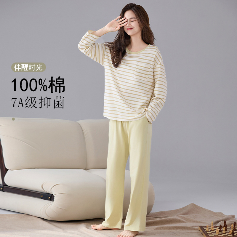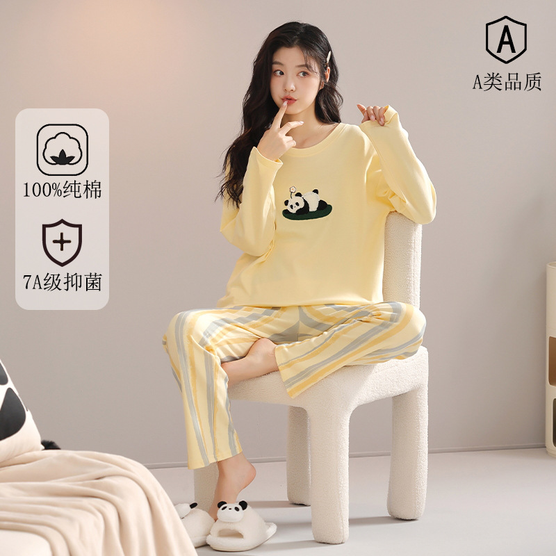 A类抗菌纯棉睡衣女士秋冬季长袖长裤休闲可外穿全棉家居服女套装