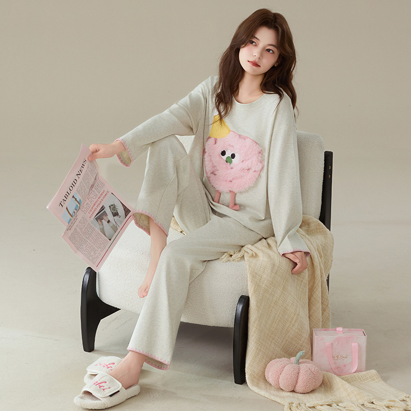 A类抗菌 爽棉长袖睡衣女甜美卡通少女新款时尚纯棉加大码可外穿冬