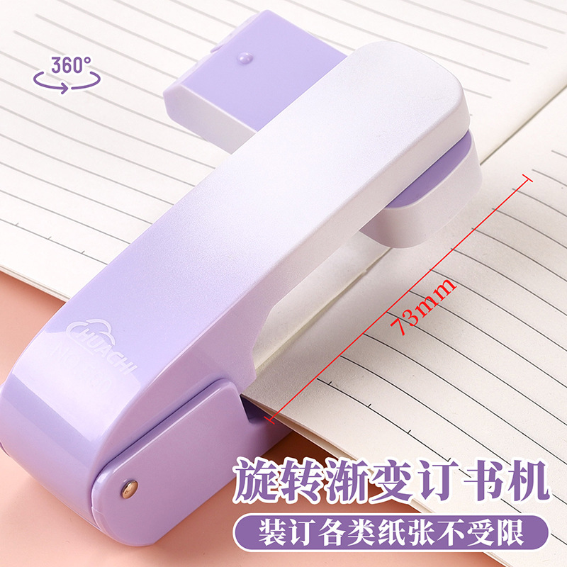 高颜值渐变色360度可旋转订书机多功能学生办公用省力订书器批发