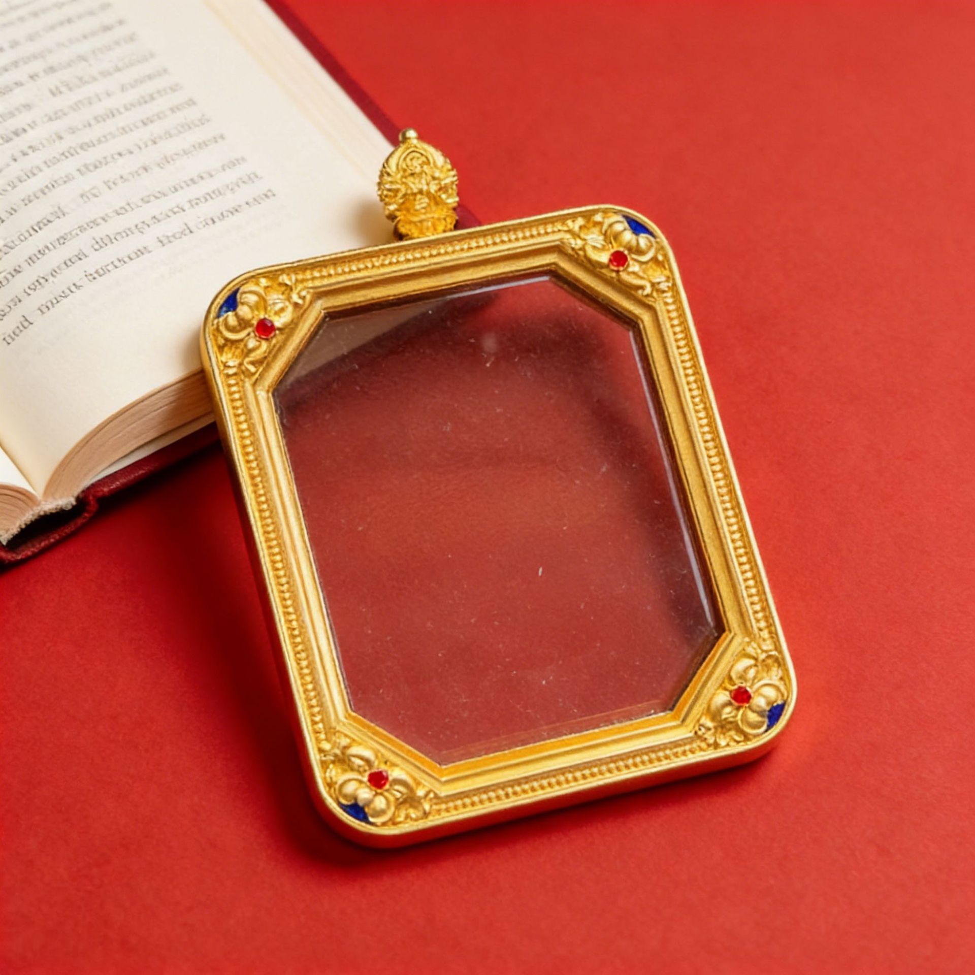 4x5金色藏式合金方形金刚杵头唐卡盒空盒空壳单面嘎乌盒吊坠