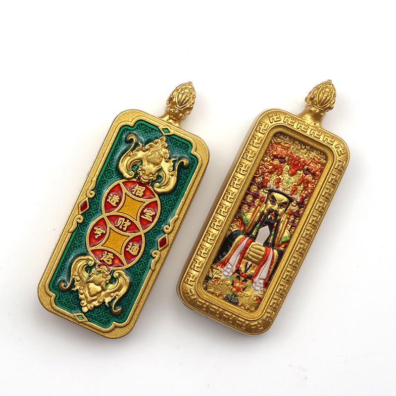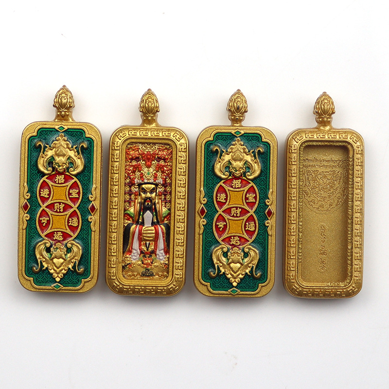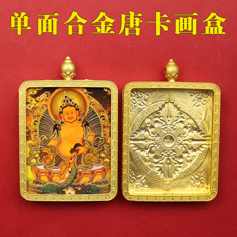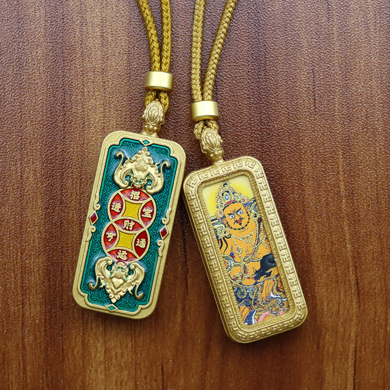 チベット式両面立体唐カード手描き描金八大守護神黄財神五爺保色メッキ唐カードネックレス