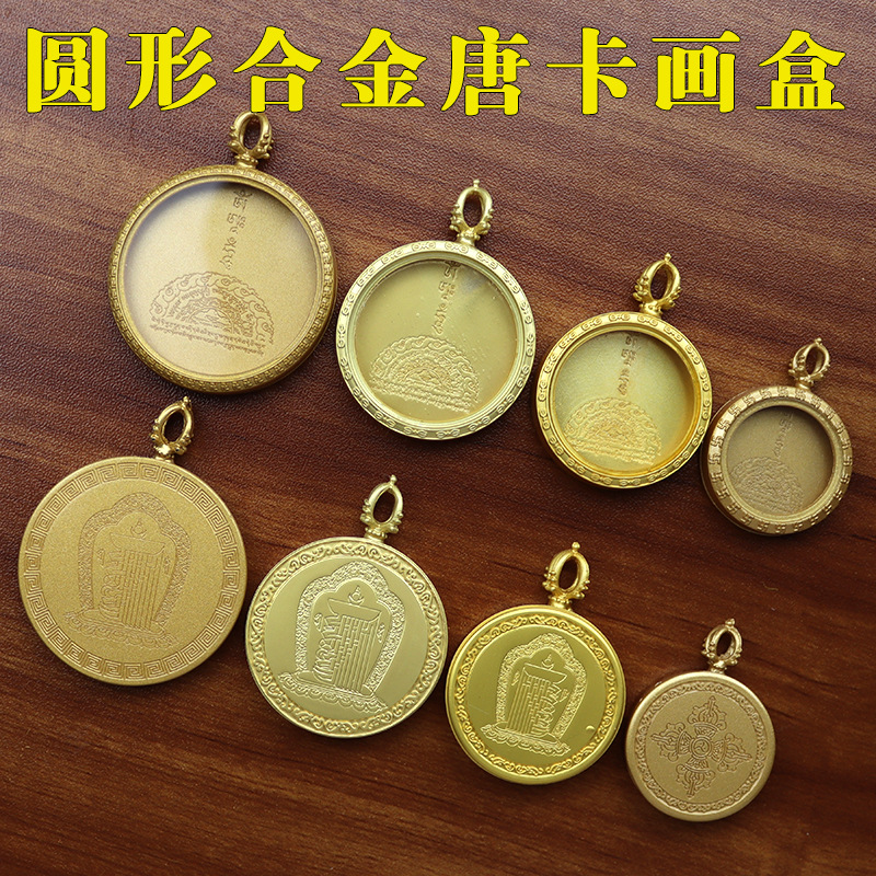 圆形单面十相自在唐卡盒子金色唐卡外壳嘎乌盒防水空盒子厂家批发