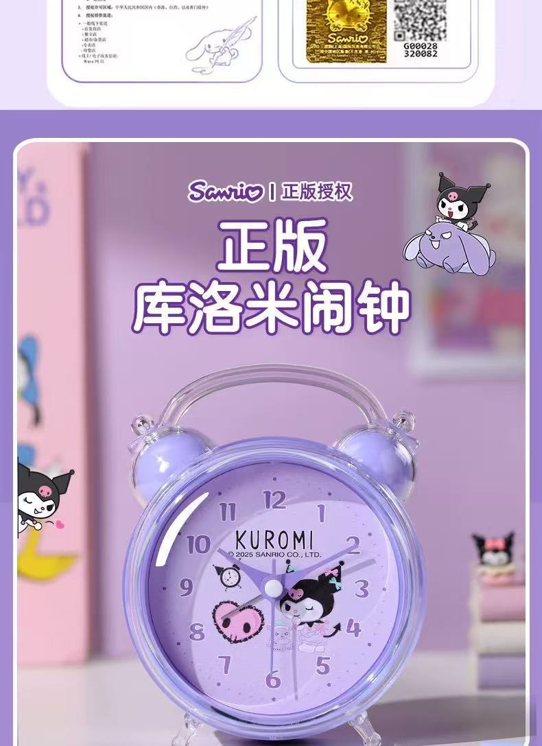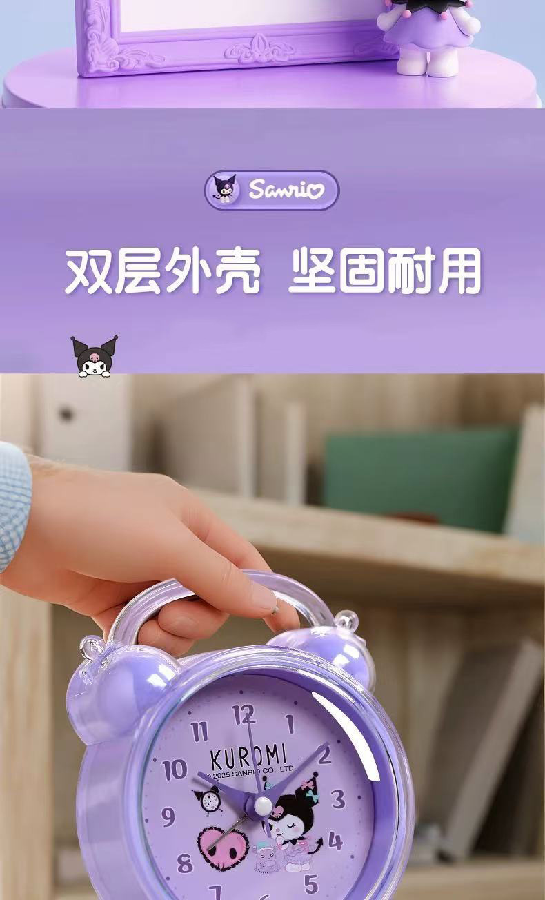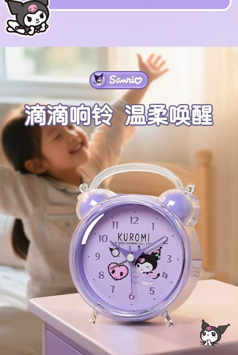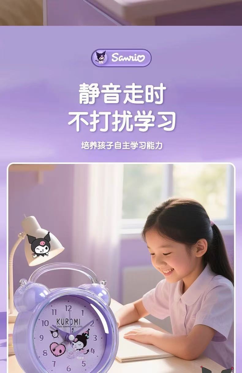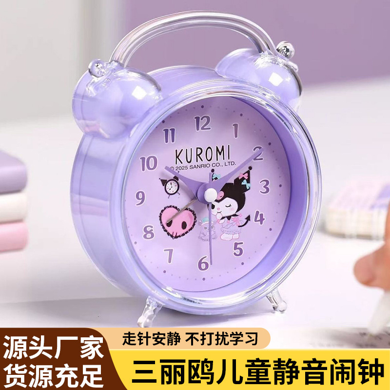三丽鸥儿童静音闹钟走针安静无杂音库洛米卡通造型平摆闹钟批发