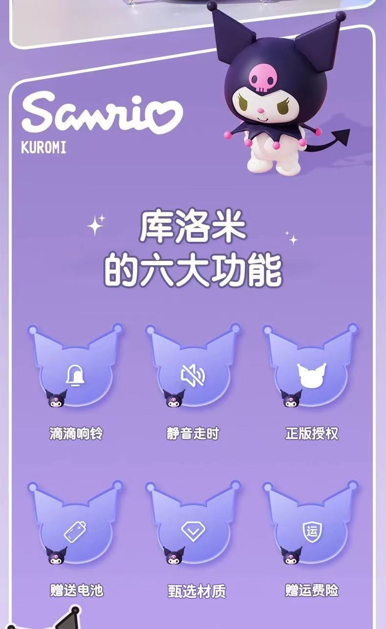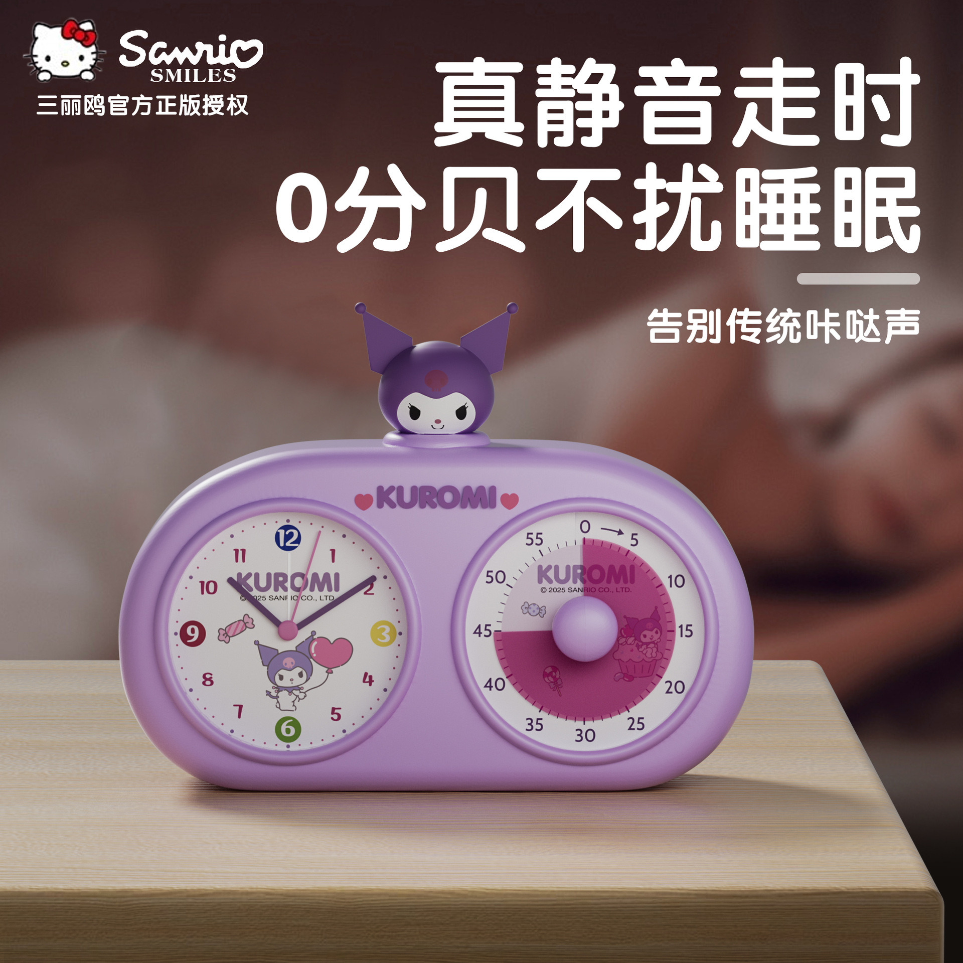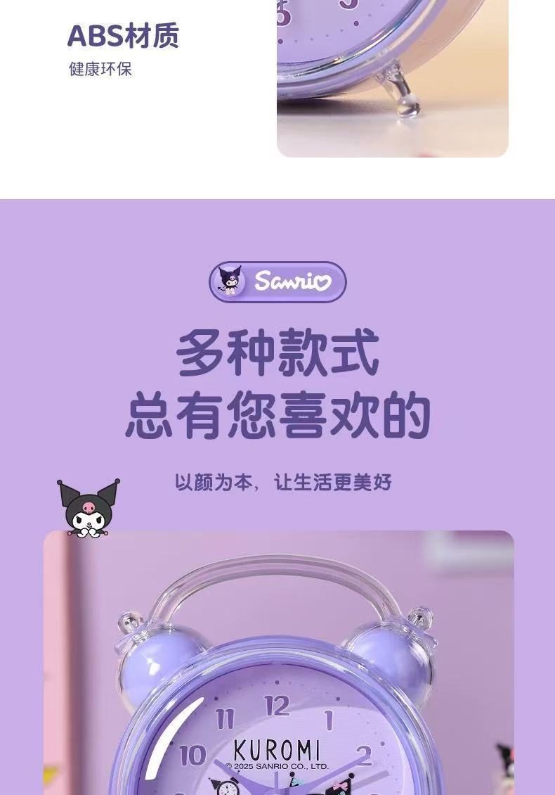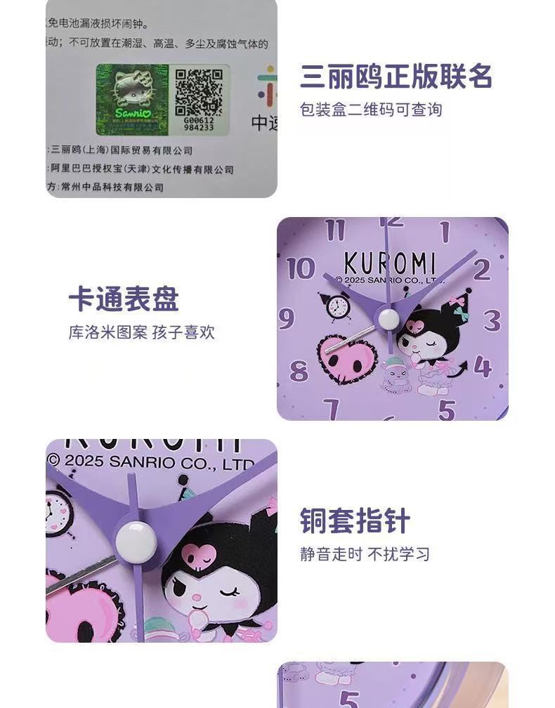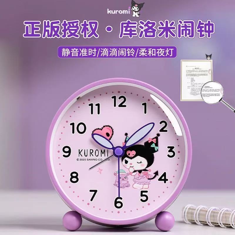 三丽鸥儿童静音闹钟走针安静无杂音库洛米卡通造型平摆闹钟批发