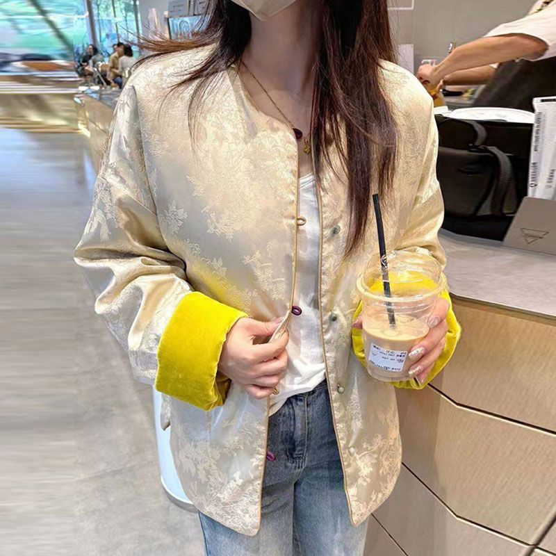 2025年秋季新款新中式国风上衣女高端唐装中国风简约百搭黄色外套