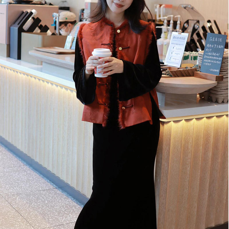 新中国式文芸改良版毛毛襟高級漢元素国潮秋冬新作保温復古風ベスト