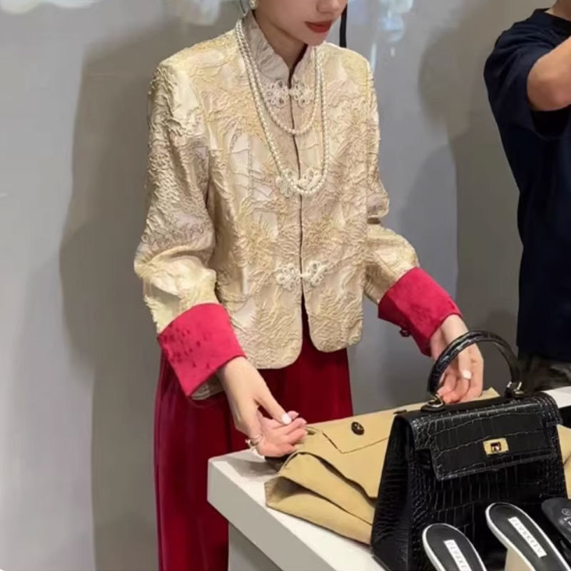 日常通勤洋風ファッション上着秋新作漢要素改良版唐装赤中国風コート