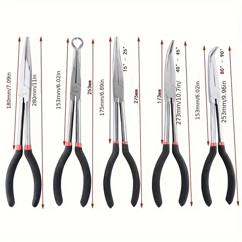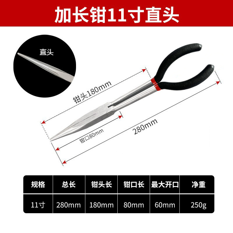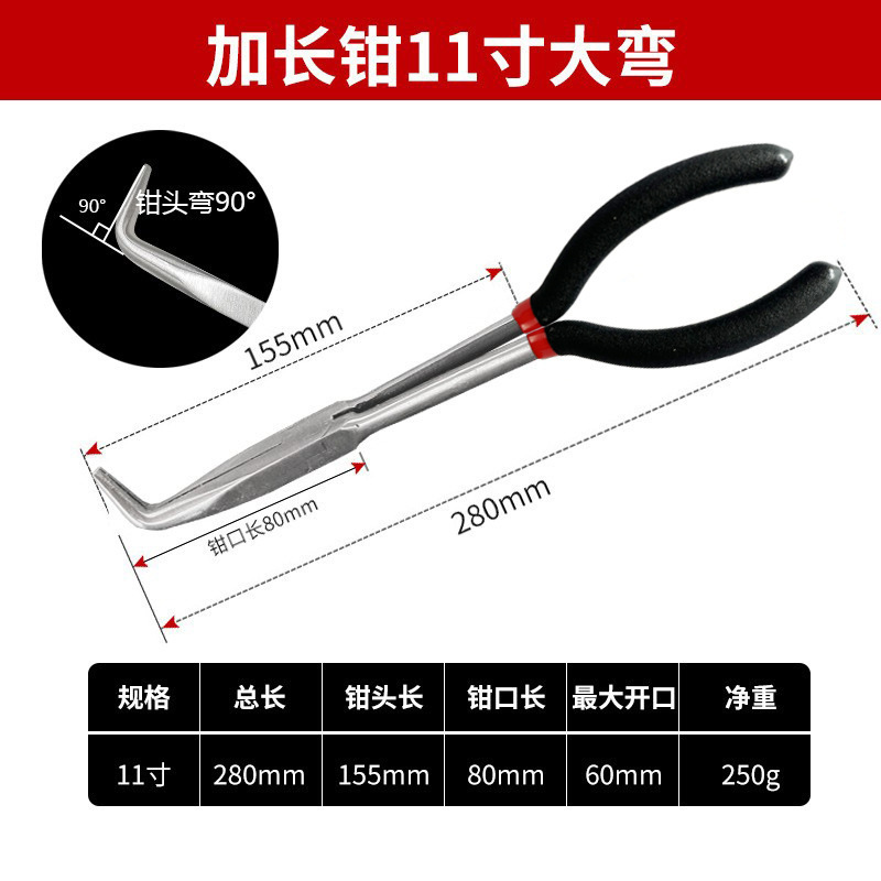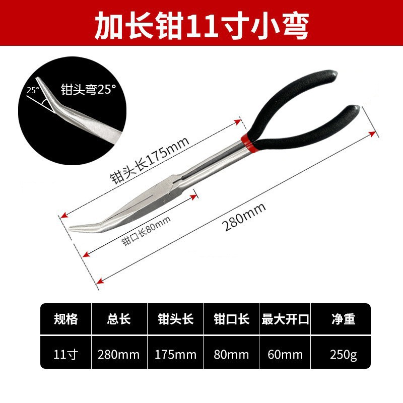新款加长尖嘴钳加长柄45度90度弯嘴长嘴钳子11寸O型夹持维修工具