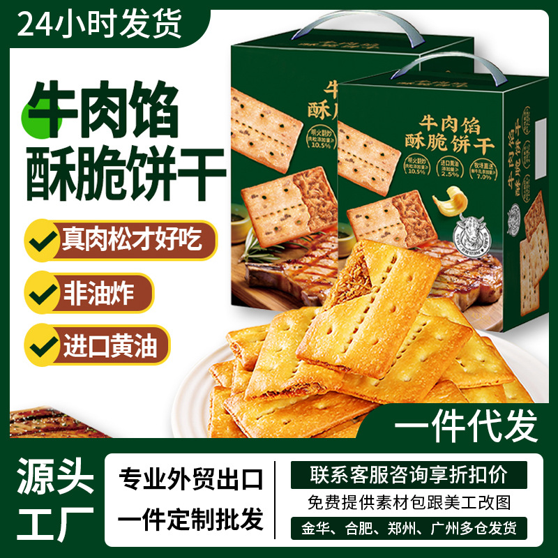 牛肉馅酥脆饼干牛肉松网红同款早餐办公室休闲小零食薄脆解馋整箱