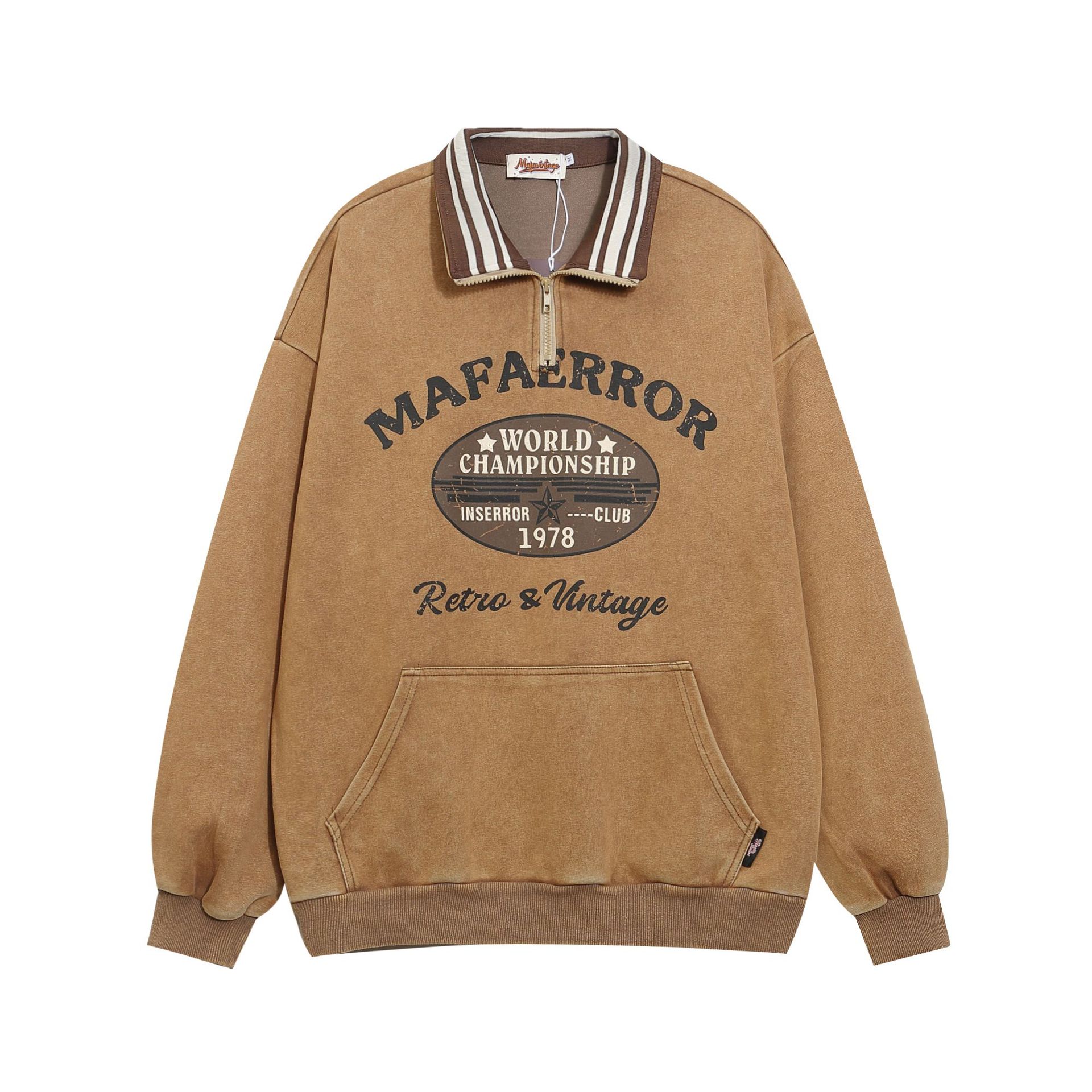 アメリカン スウェットシャツ レトロ ストリート カレッジ スタイル ポロカラー 長袖 メンズ レディース ルーズ オールマッチ カップル トップス