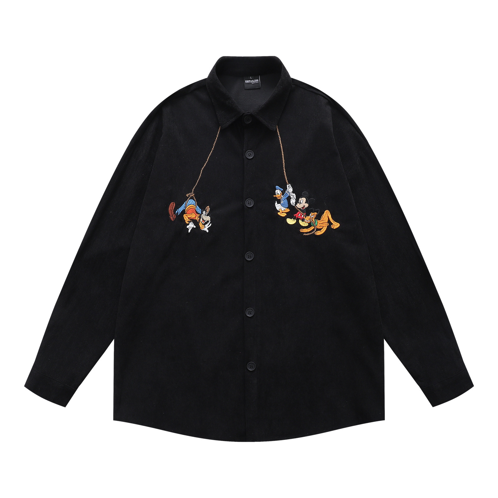 美式复古卡通刺绣灯芯绒长袖衬衫男2025秋季宽松休闲百搭情侣衬衣