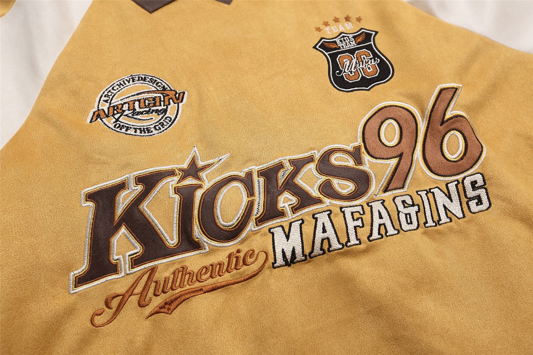 美式复古运动撞色拼接长袖T恤男女秋季街头个性宽松休闲V领球衣潮