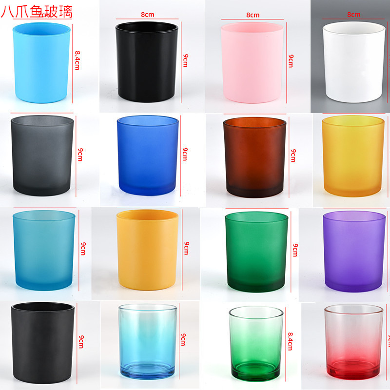 メーカー卸売アロマガラスカップ、多色スプレー塗装ガラスキャンドルホルダー、カラフルなアロマキャンドルカップ、グラデーションガラスカップ