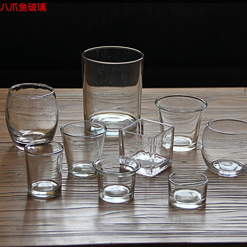 透明キャンドルカップガラス模様付きアロマベッドルーム燭台雰囲気置物厚いガラスキャンドル空カップ