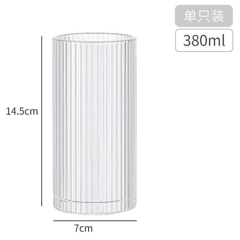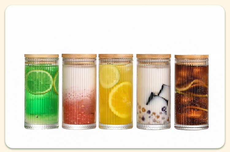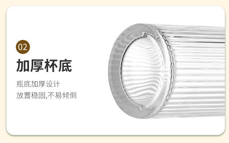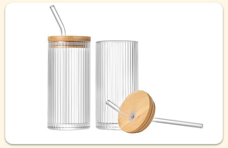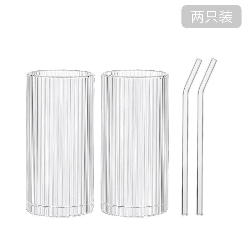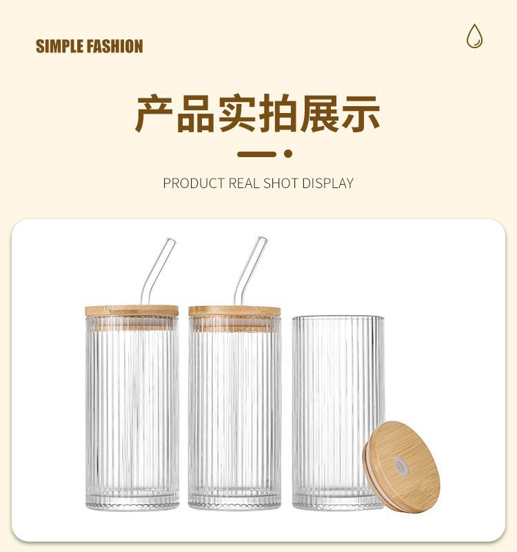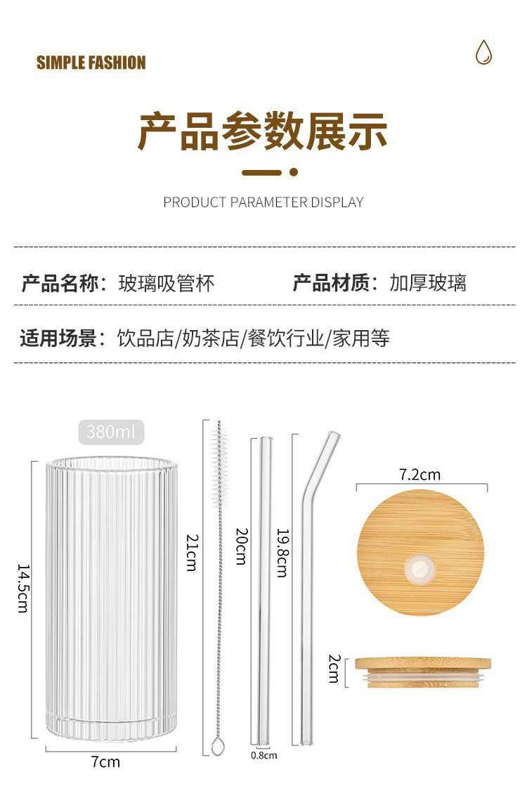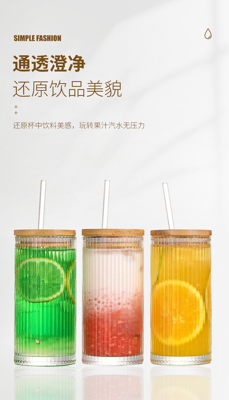 亚马逊12oz竖条纹冷饮果汁可乐饮料玻璃杯牛奶杯带盖吸管量大从优