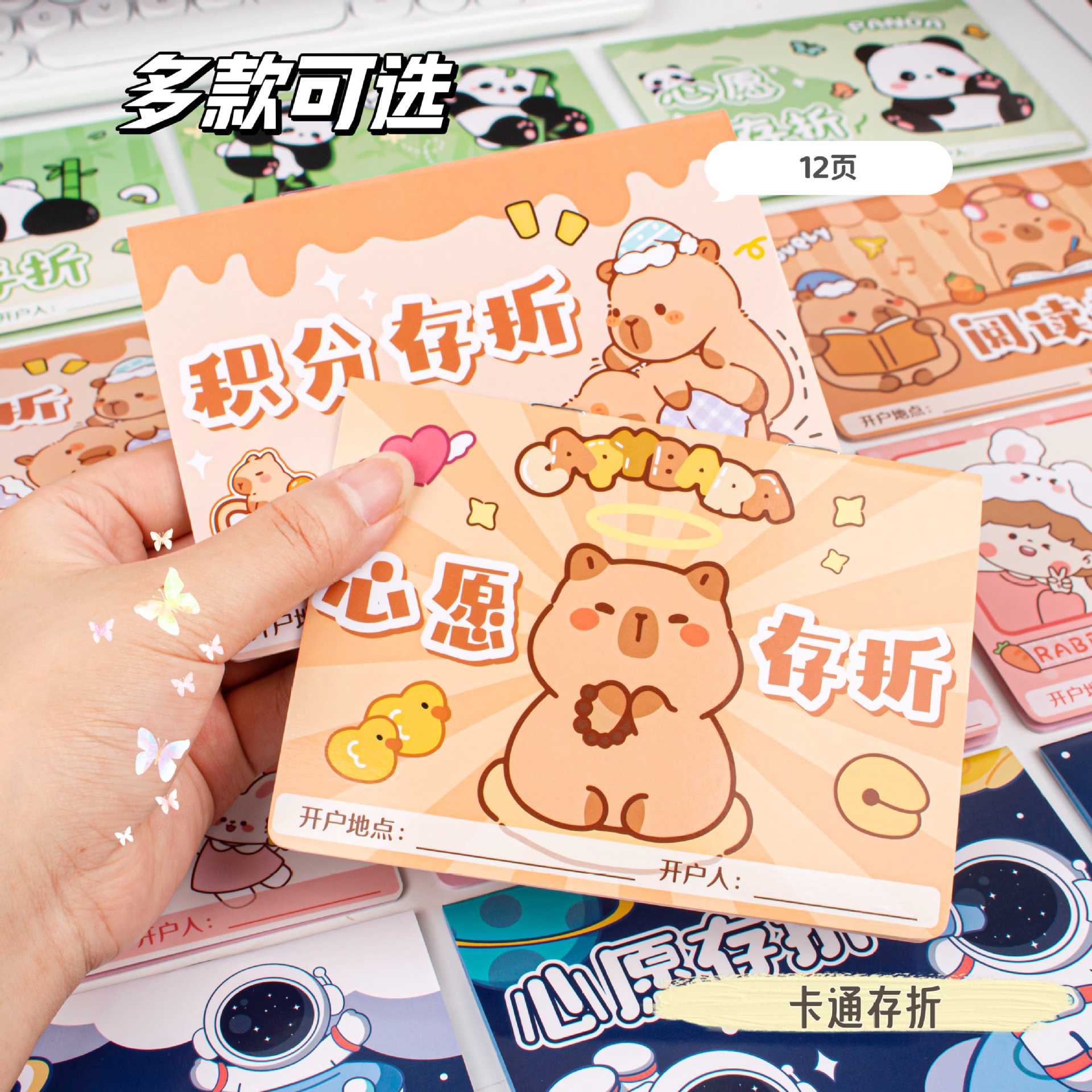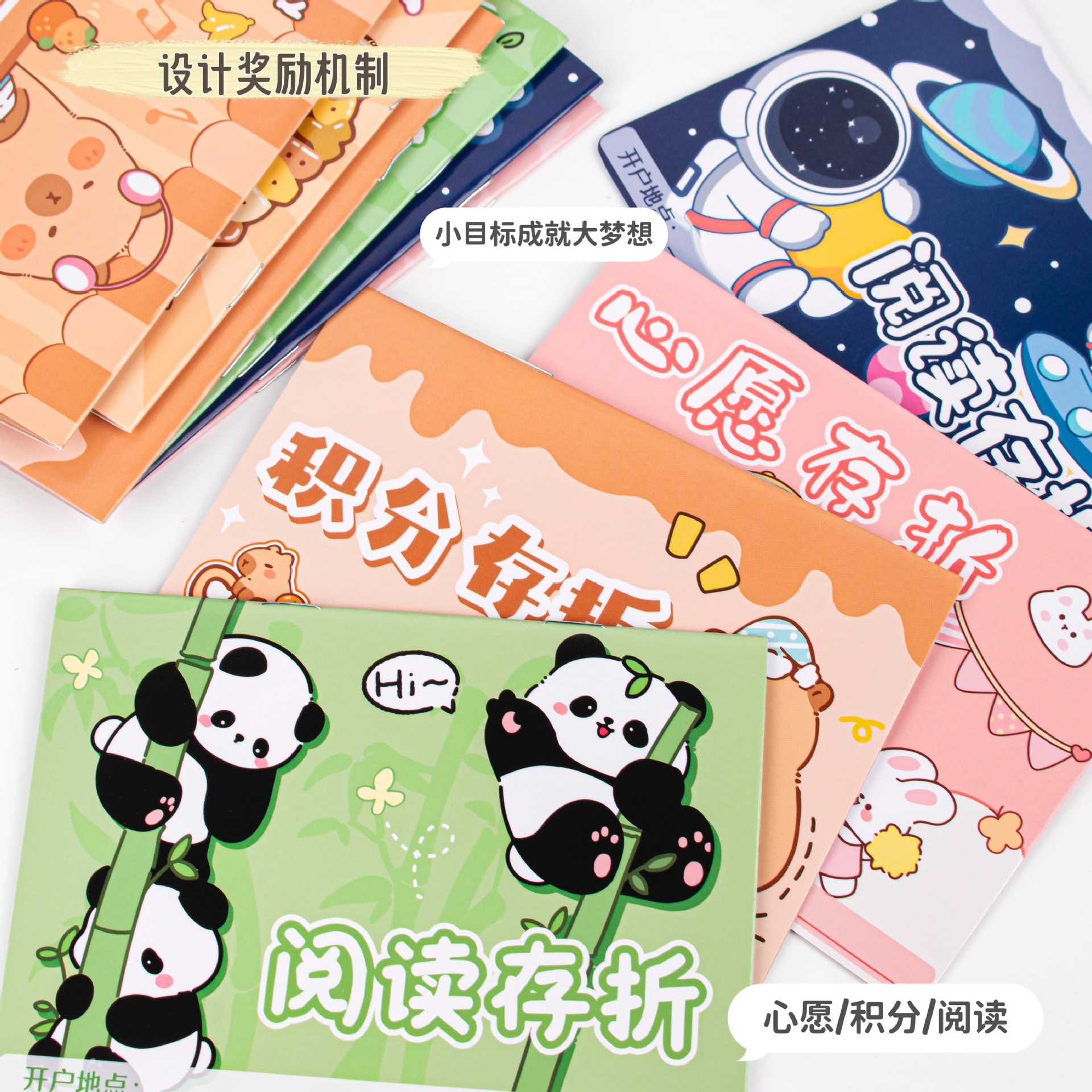 封面颜色 卡皮巴拉积分存折【1本装】,卡皮巴拉心愿存折【1本装】,卡皮巴拉阅读存折【1本装】,甜心米朵积分存折【1本装】,甜心米朵心愿存折【1本装】,甜心米朵积阅读折【1本装】,星际探险积分存折【一本装】,星际探险心愿存折【一本装】,星际探险阅读存折【一本装】,熊猫胖达积分存折【一本装】,熊猫胖达心愿存折【一本装】,熊猫胖达阅读存折【一本装】