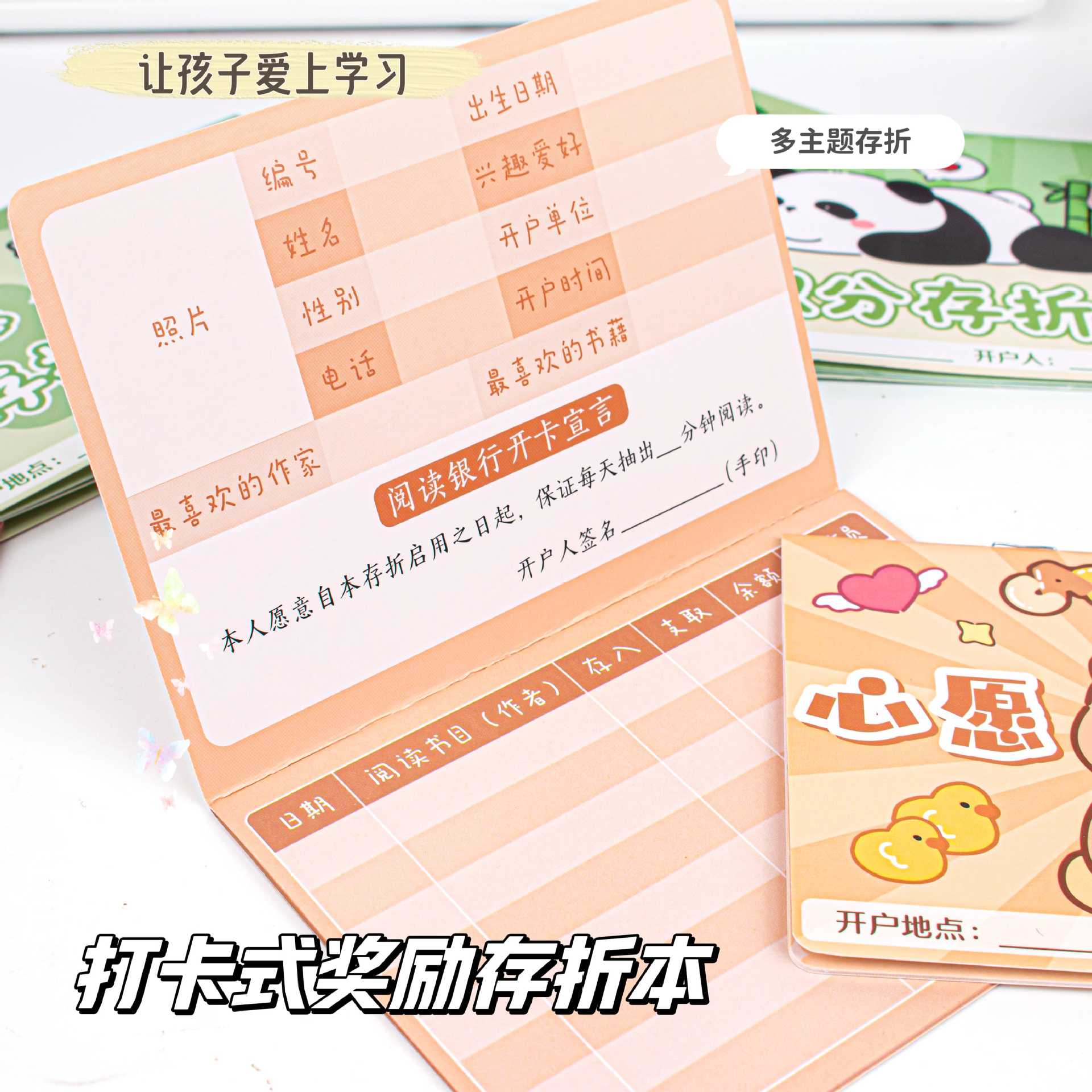 儿童成长阅读心愿存折小学生可爱卡通读书卡片积分奖励卡英语存折