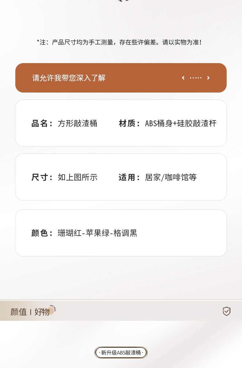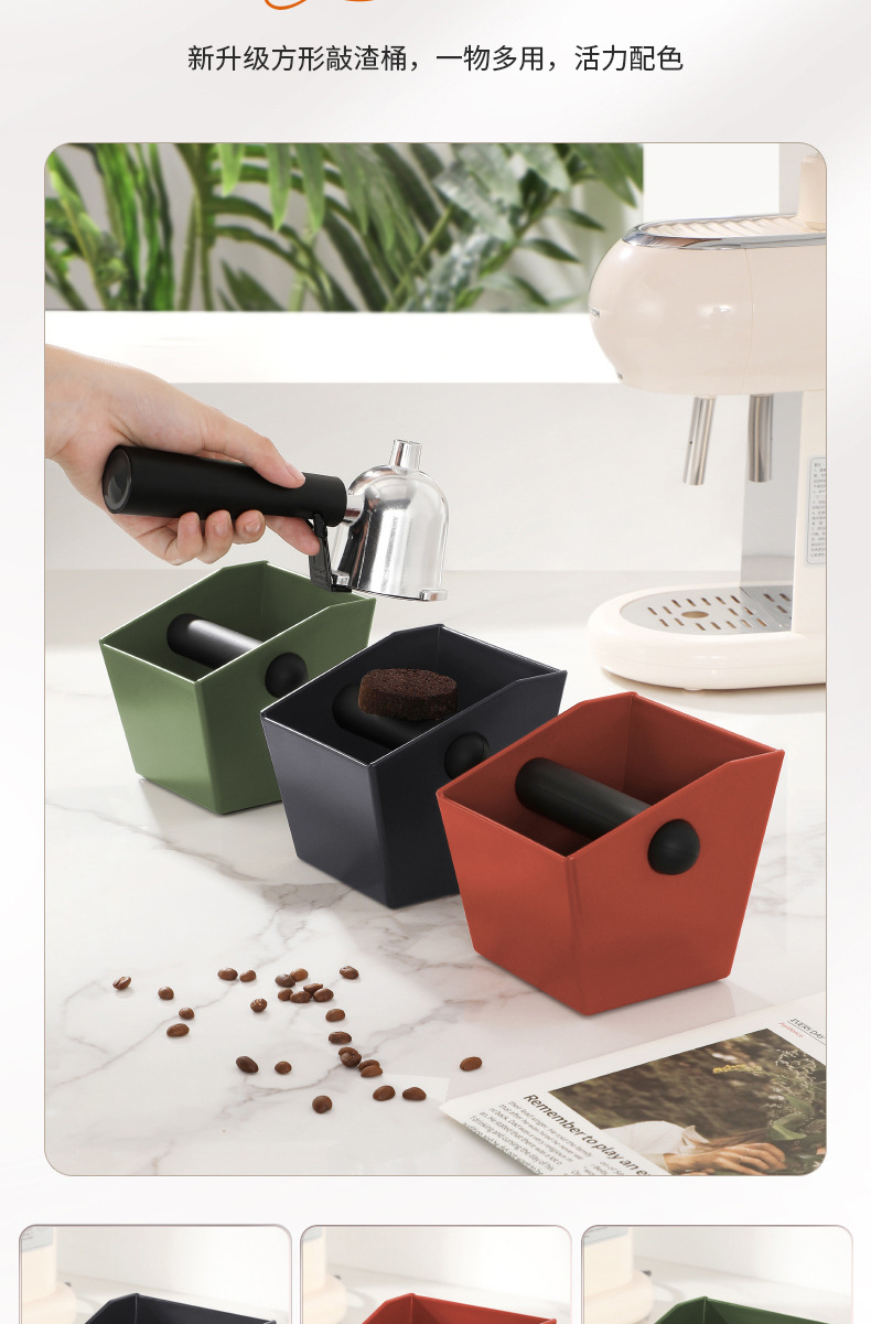 跨境热销ABS方形渣桶意式咖啡敲渣桶吧台咖啡废渣桶咖啡粉收纳桶