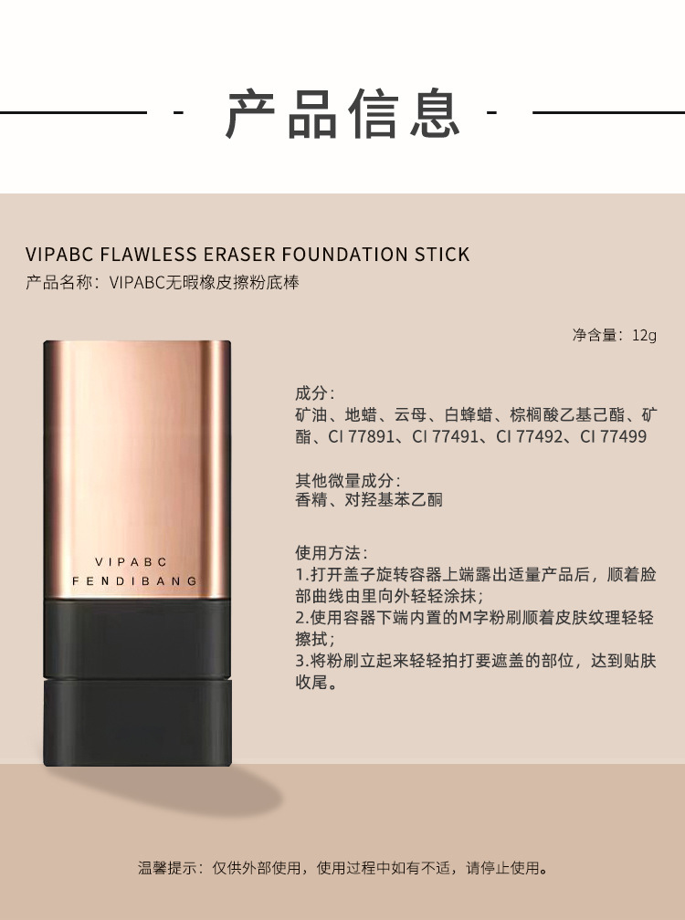 产品名称 VIPABC无暇橡皮擦粉底棒
