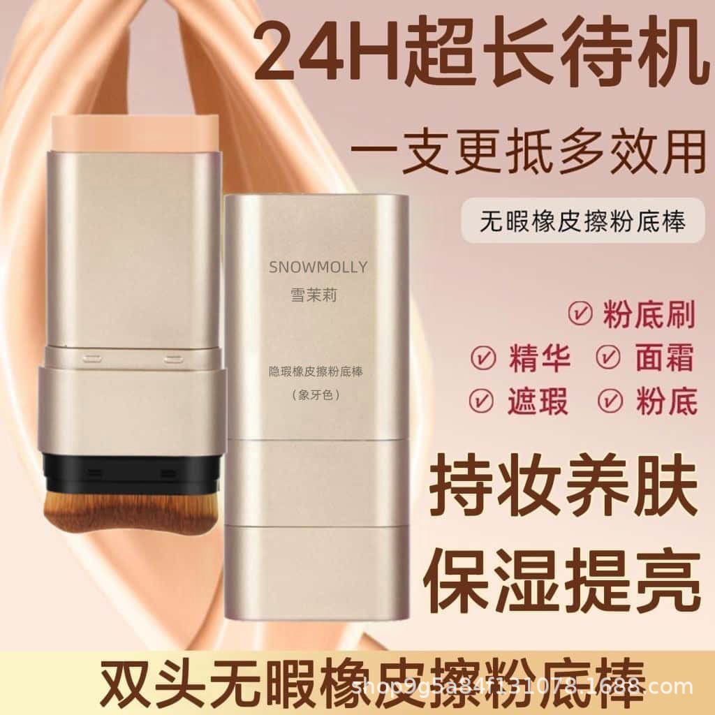 雪茉莉双头粉底棒无暇橡皮擦防水不卡粉服帖水润控油遮瑕持久不脱
