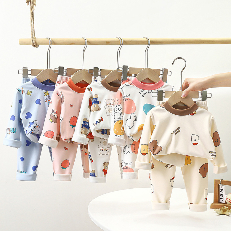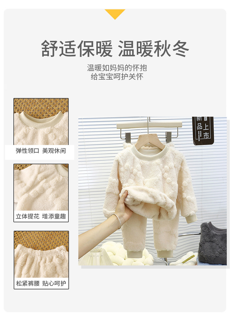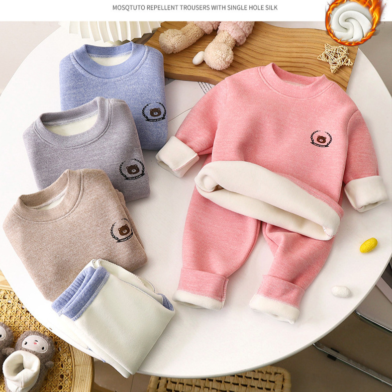 子供用保温下着セット女の子用秋衣秋ズボン乳幼児用ベルベット家庭服赤ちゃん男の子用厚着