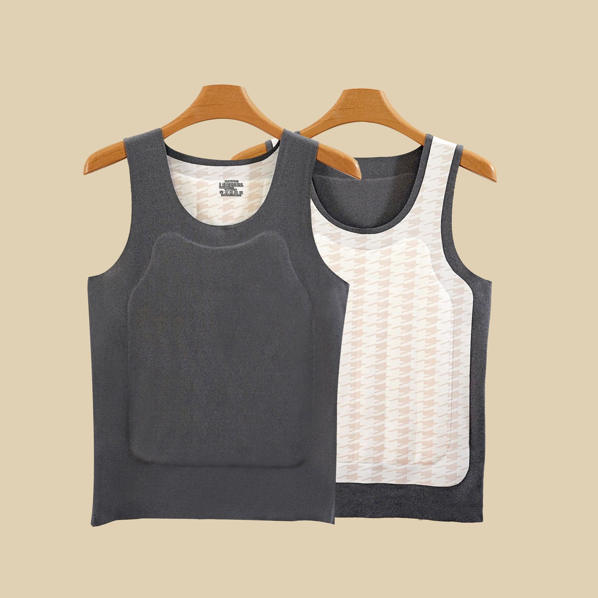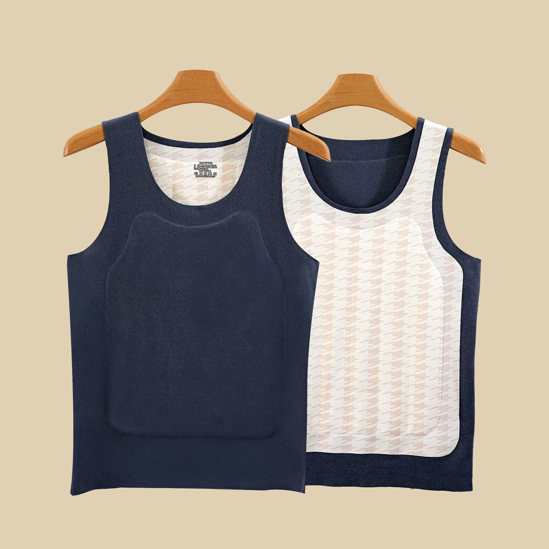 男士贴片保暖背心双面德绒内搭秋冬款加绒无袖无痕上衣发热打底衫