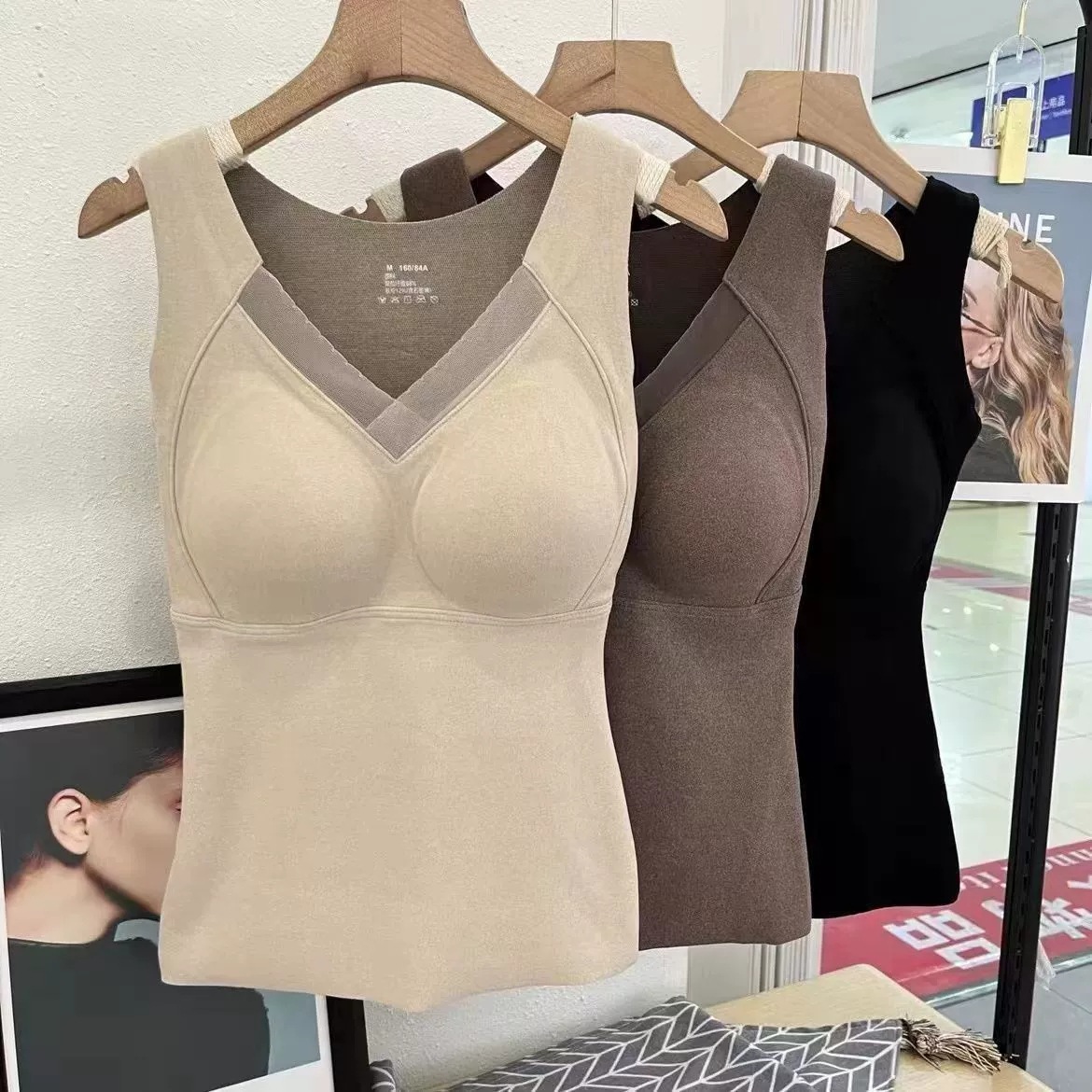 德绒国风提拉上托保暖背心带胸垫免穿文胸发热加绒加厚磨毛打底衫