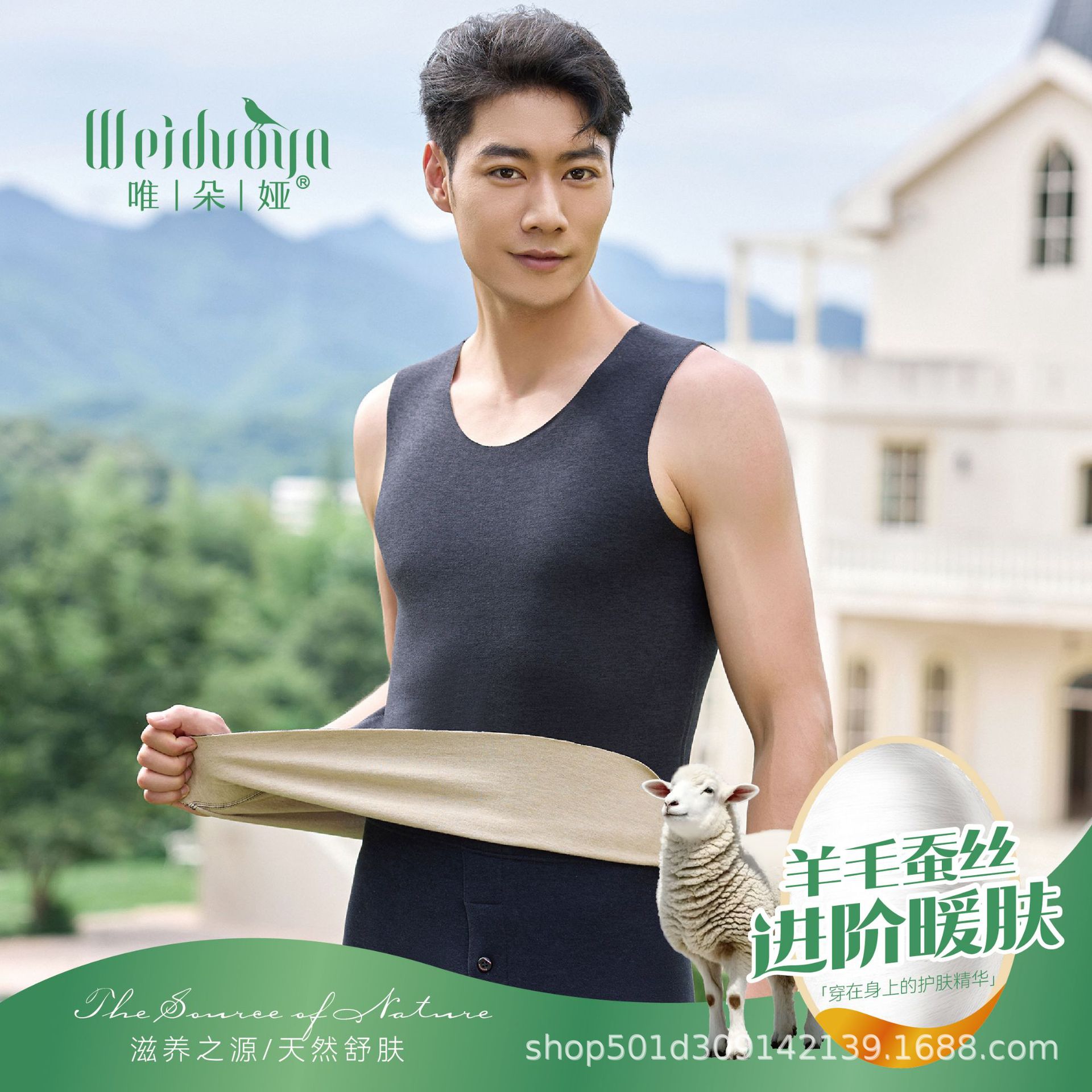 唯朵娅保暖背心打底塑身羊毛蚕丝秋德绒青少年男保暖秋冬保暖内衣