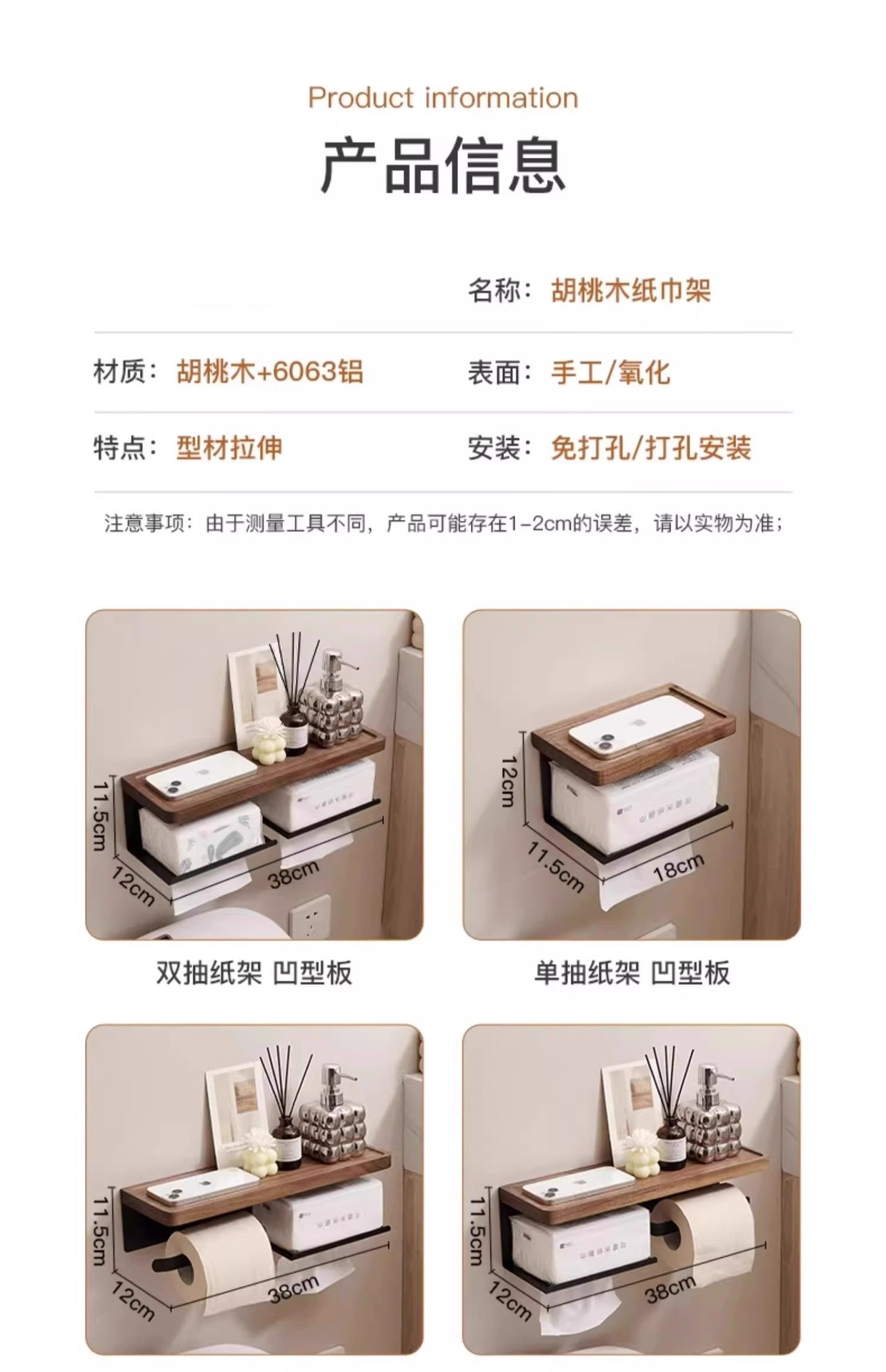 货号 胡桃木纸巾架