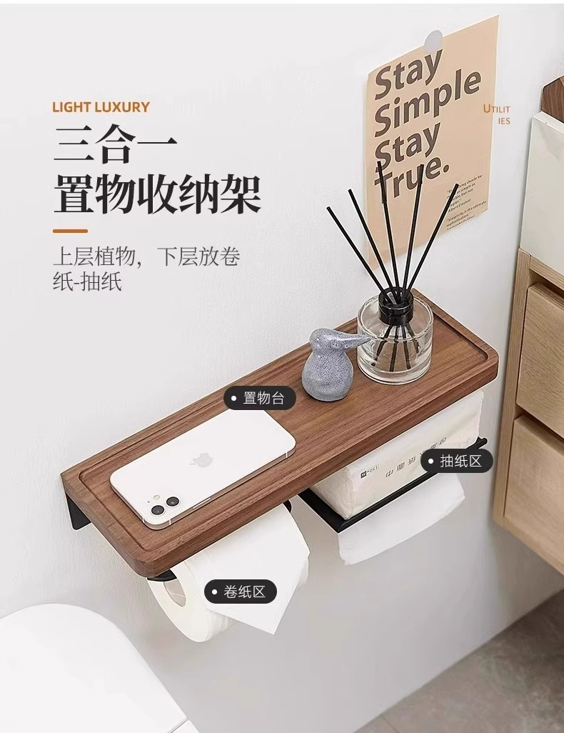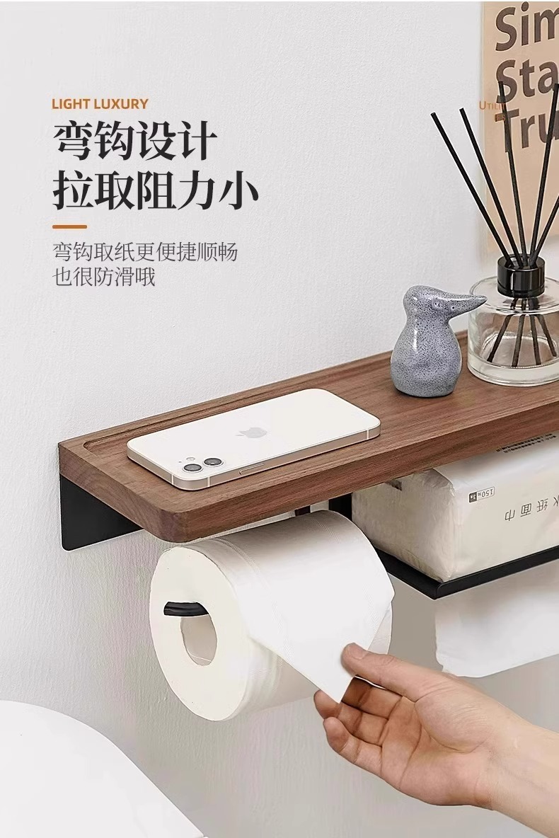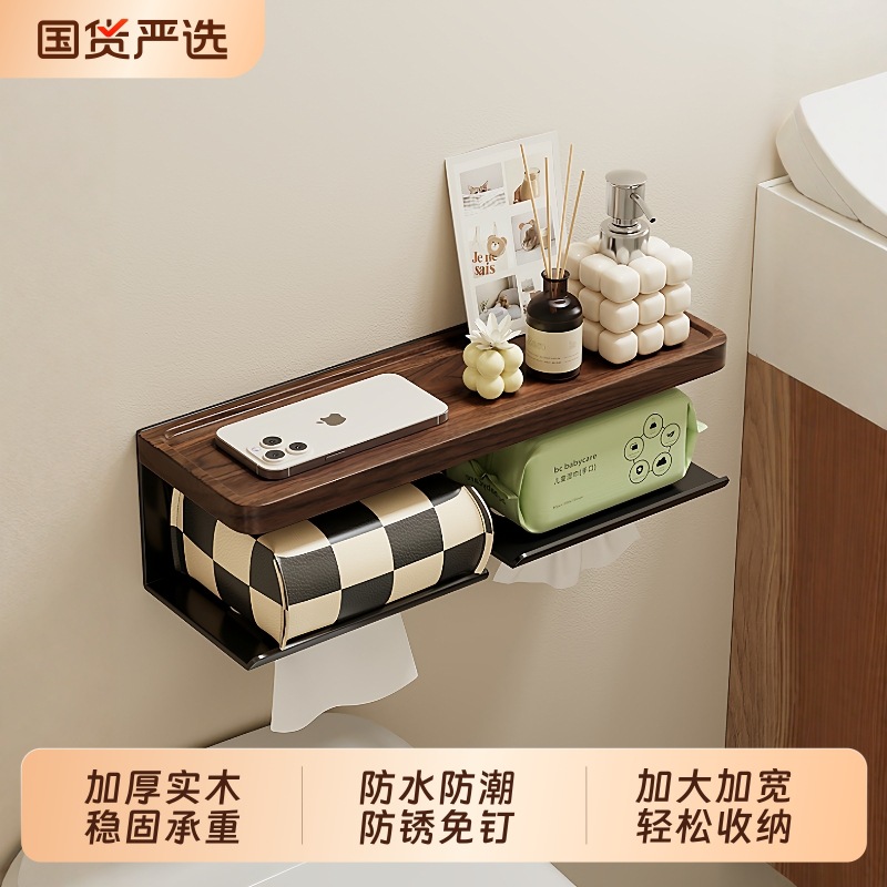 胡桃木卫生间厕纸盒免打孔浴室厕所洗手间抽纸巾洗脸巾收纳置物架