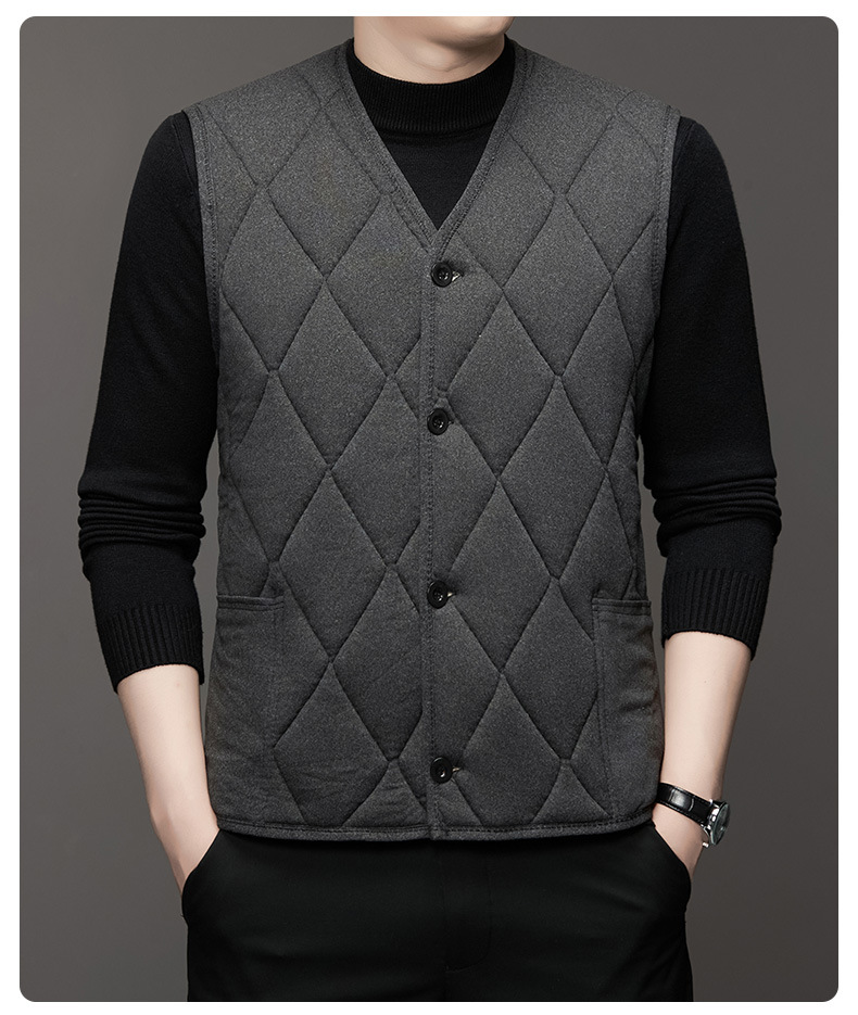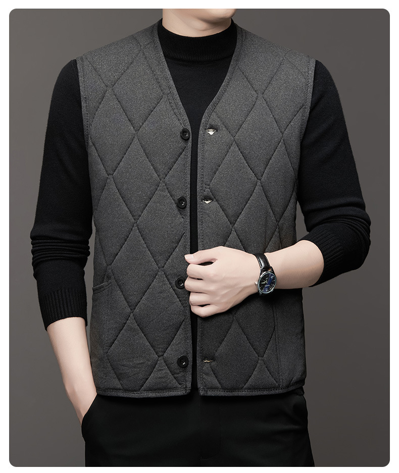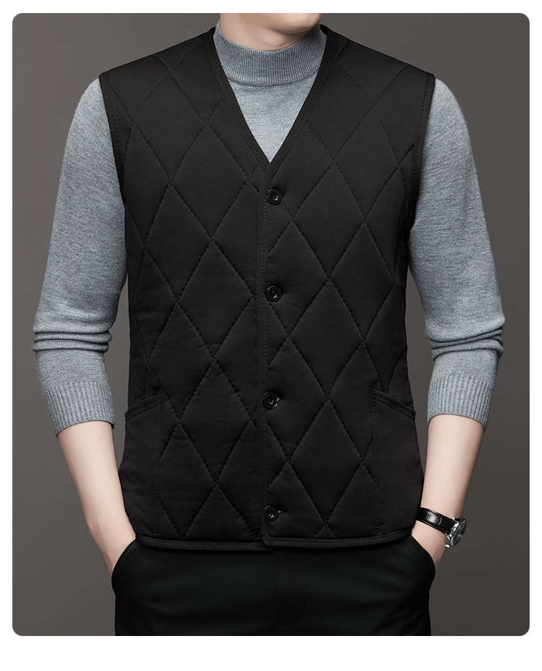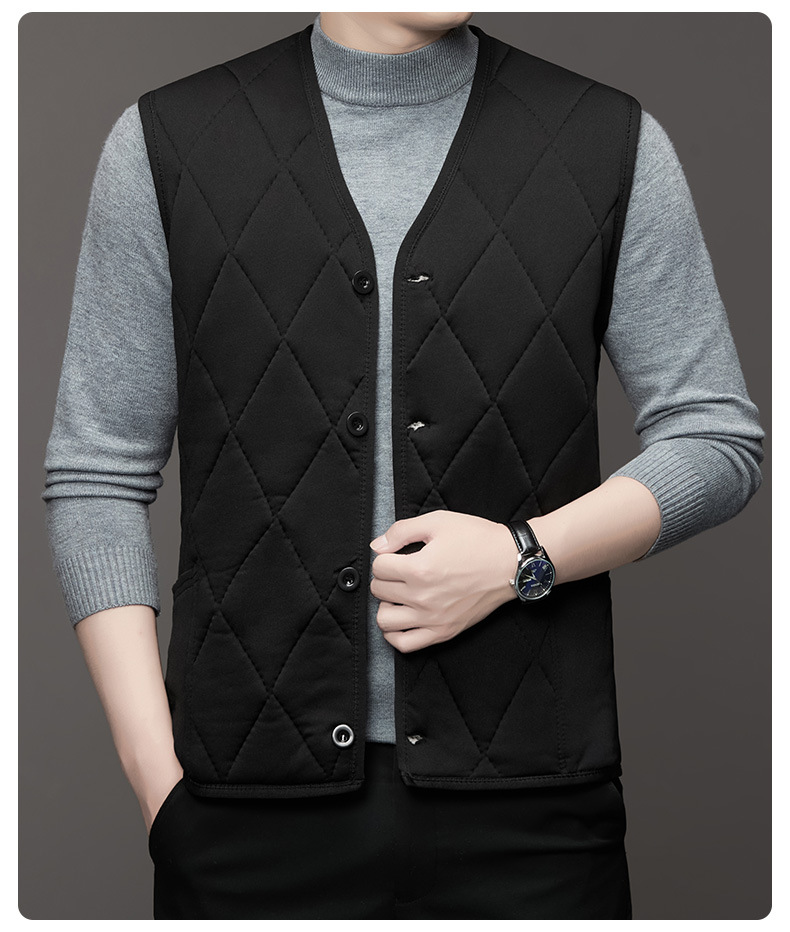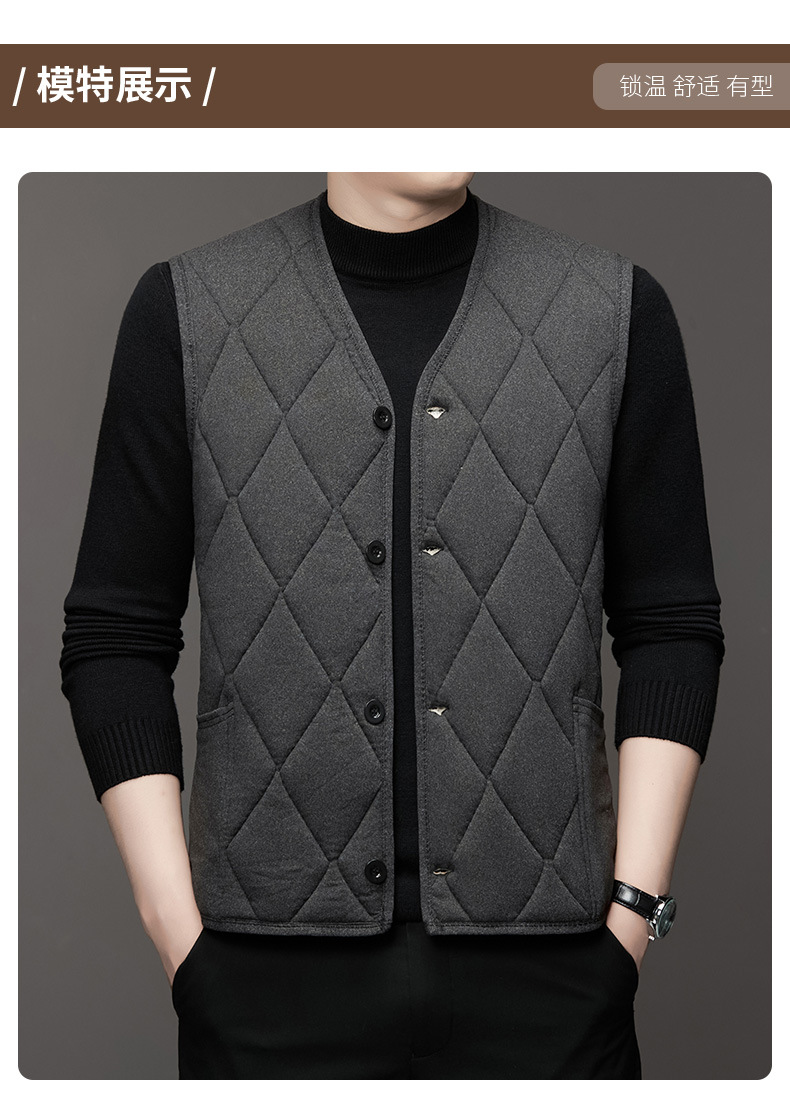 YINGAO纽扣无袖V领马甲 男士冬季新款商务内搭保暖中老年男打底衫
