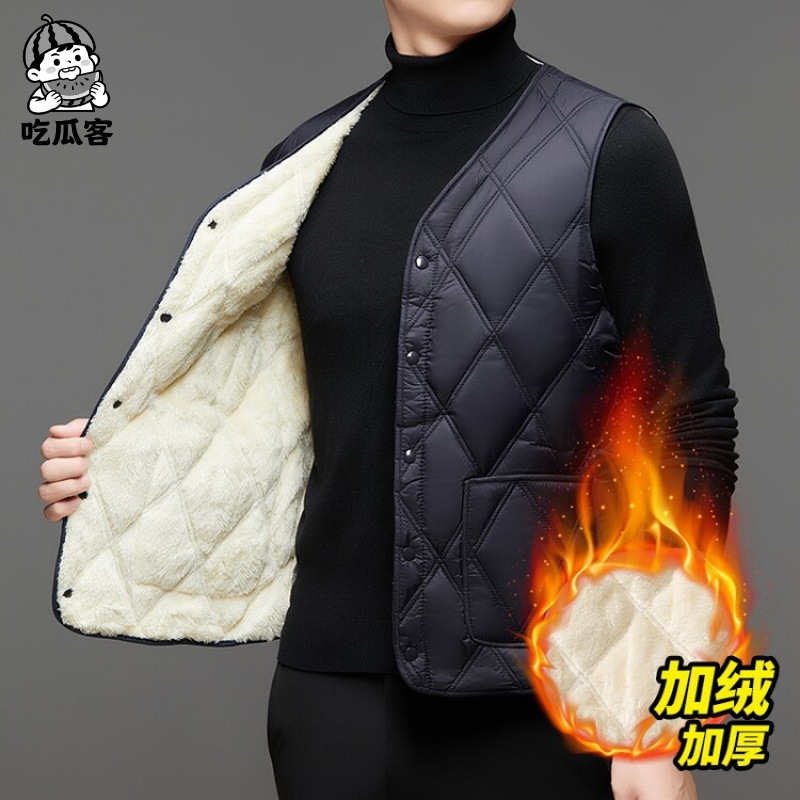 马甲男冬季新款羽绒棉加绒加厚保暖羊羔绒棉坎肩内胆背心男士马夹