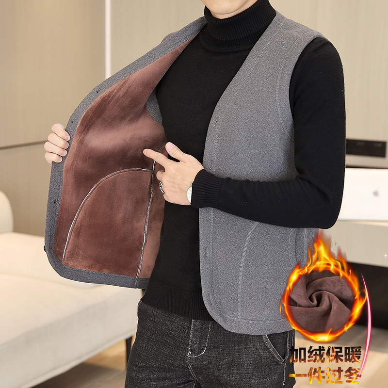 YINGAO加绒开衫冬季男士马甲跨境外贸时尚坎肩中年爸爸保暖背心男
