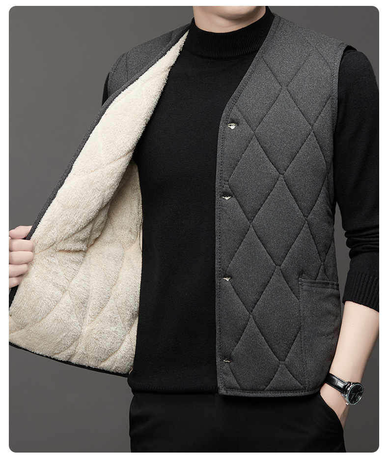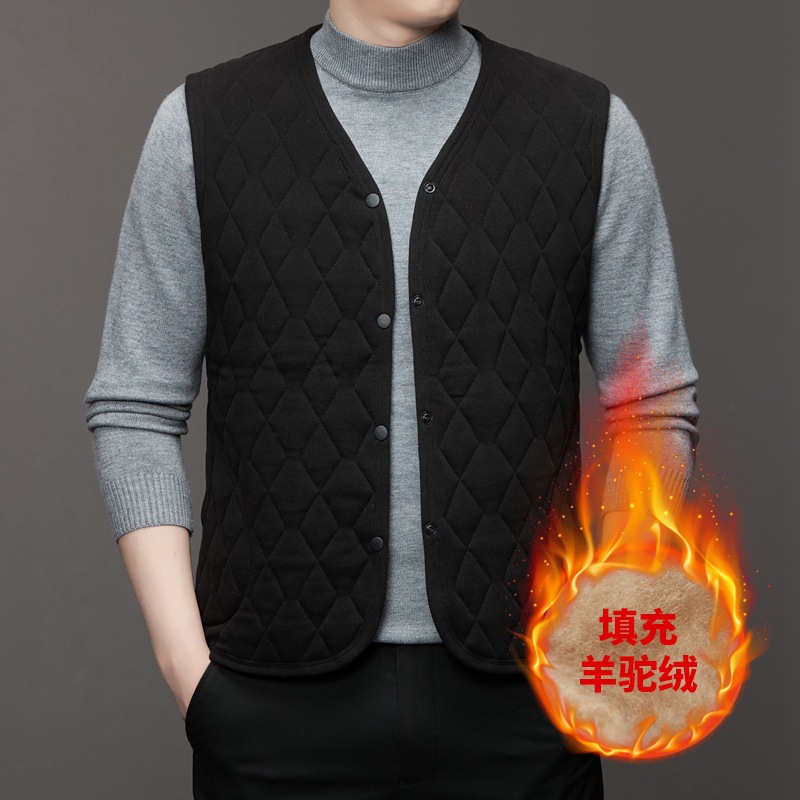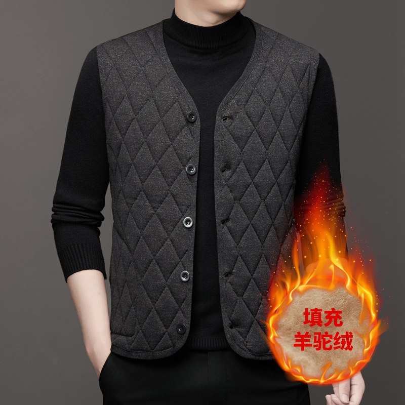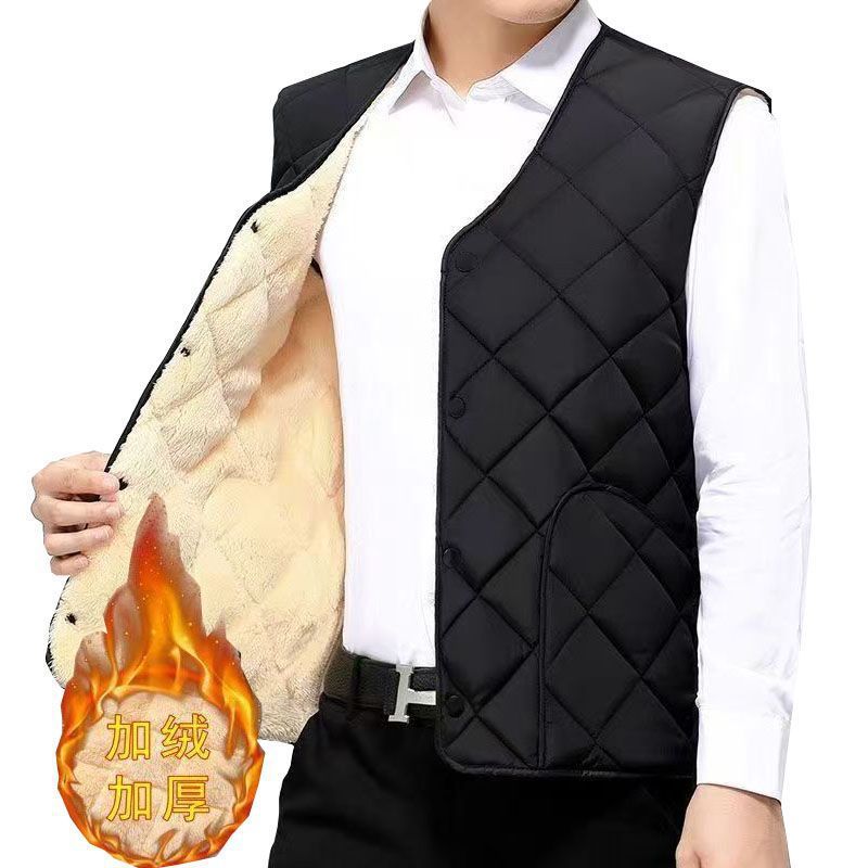 馬甲男ダウン綿2024秋冬ベルベットは保温ベストの中にベルベットの中年の父親の中に肩を着る