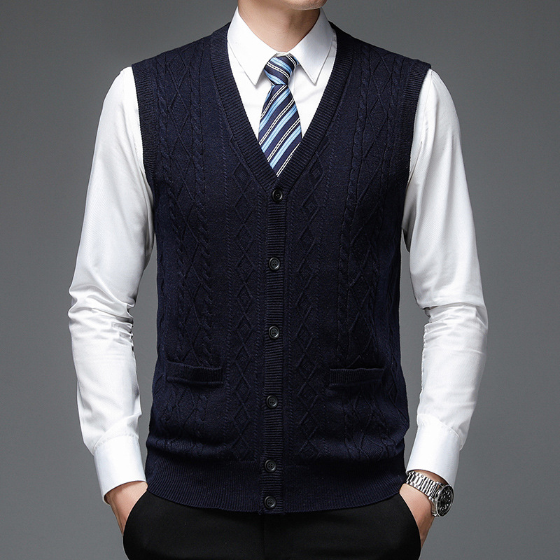 メンズベストニット V ネック中年ビジネススタイルノースリーブジャカード宴会底トレンディなメンズウールベスト卸売